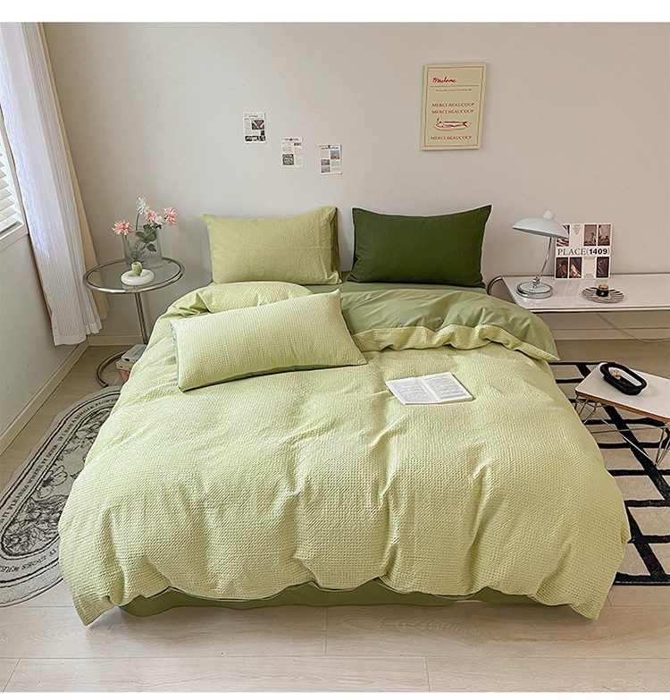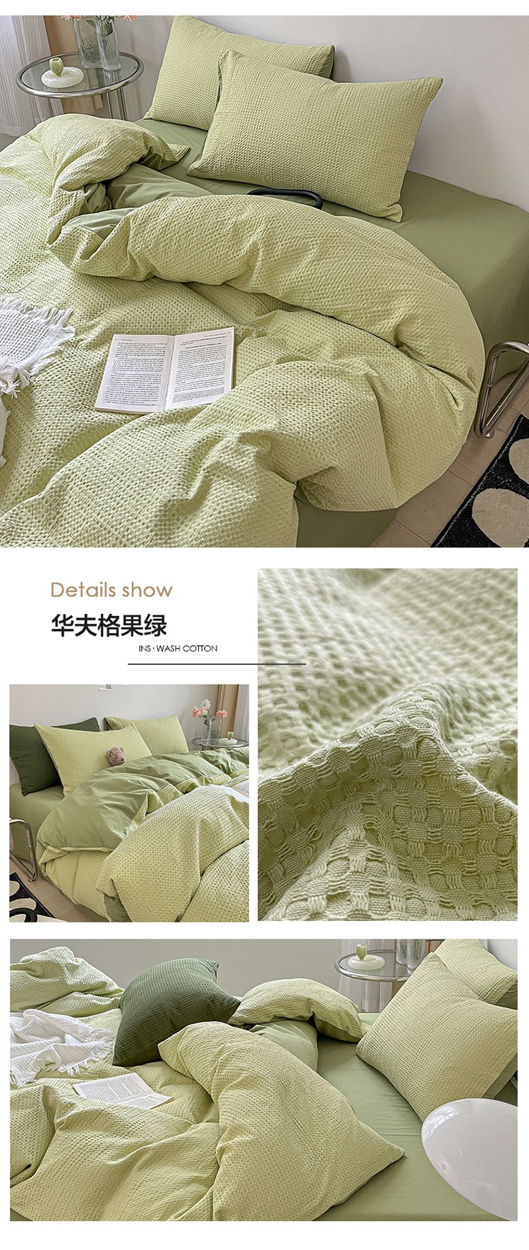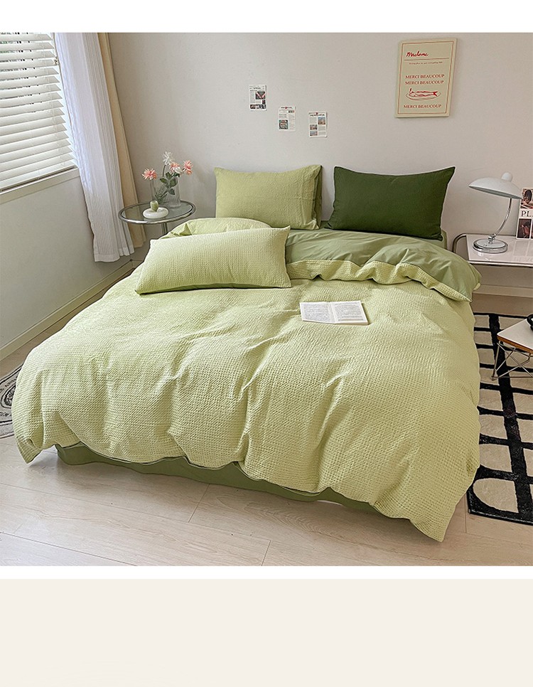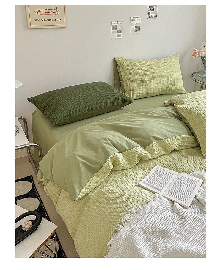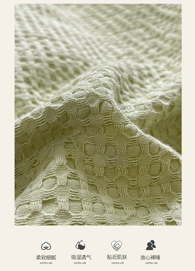 商品名称:雅居纺 2023新款全棉华夫格四件套 华夫格果绿