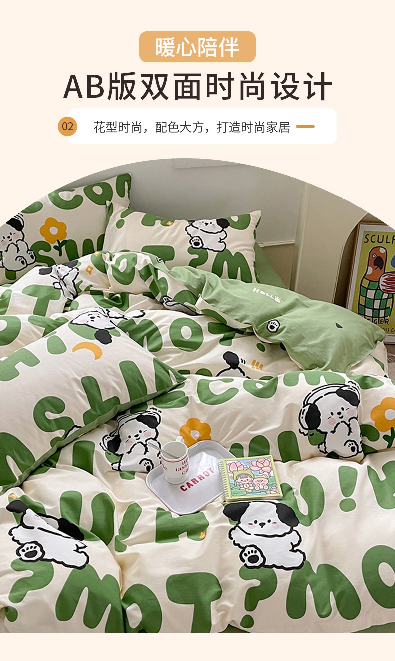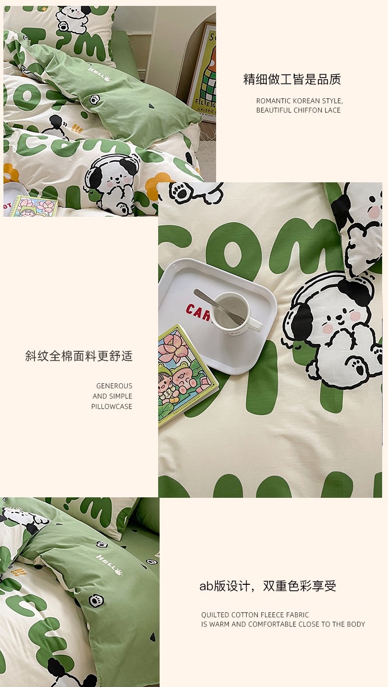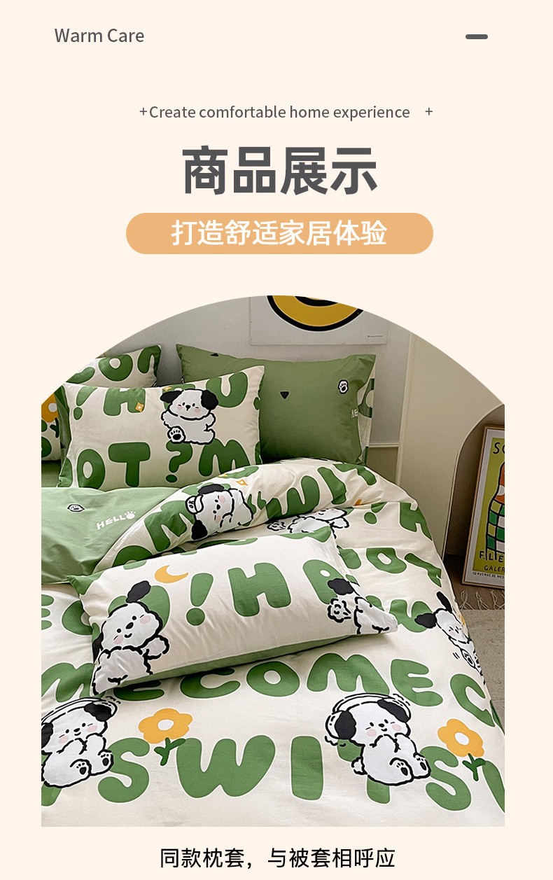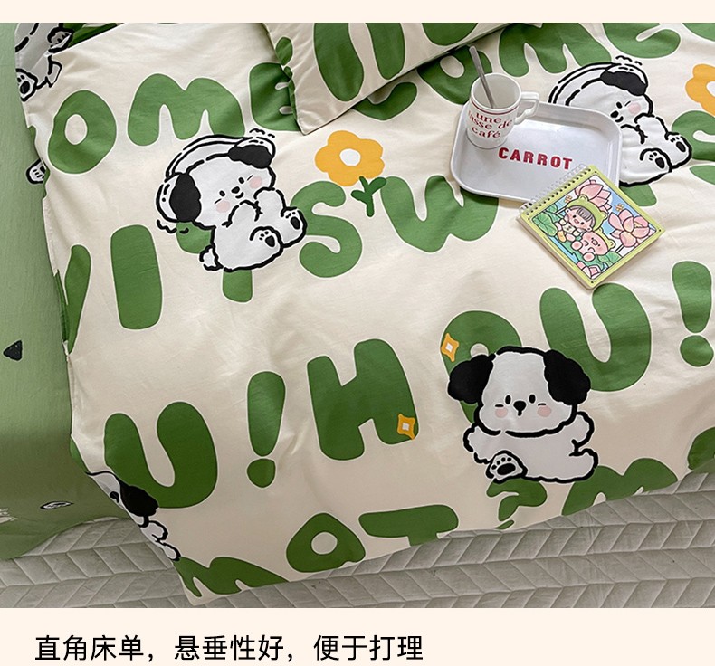 商品名称:优彩 2023新款13372全棉小清新卡通系列四件套 屁屁狗