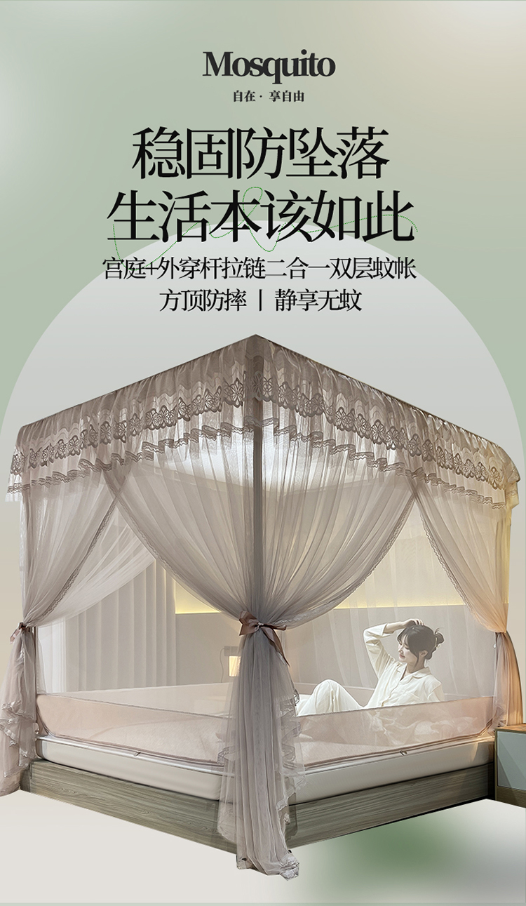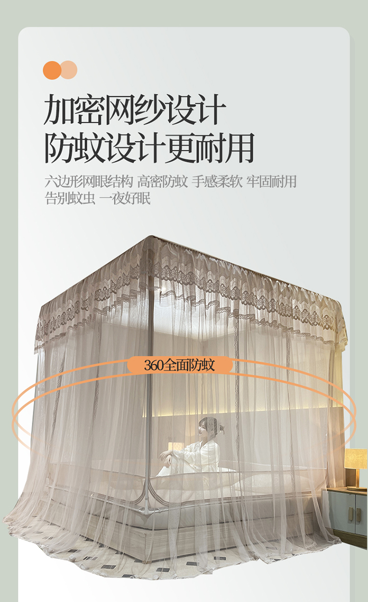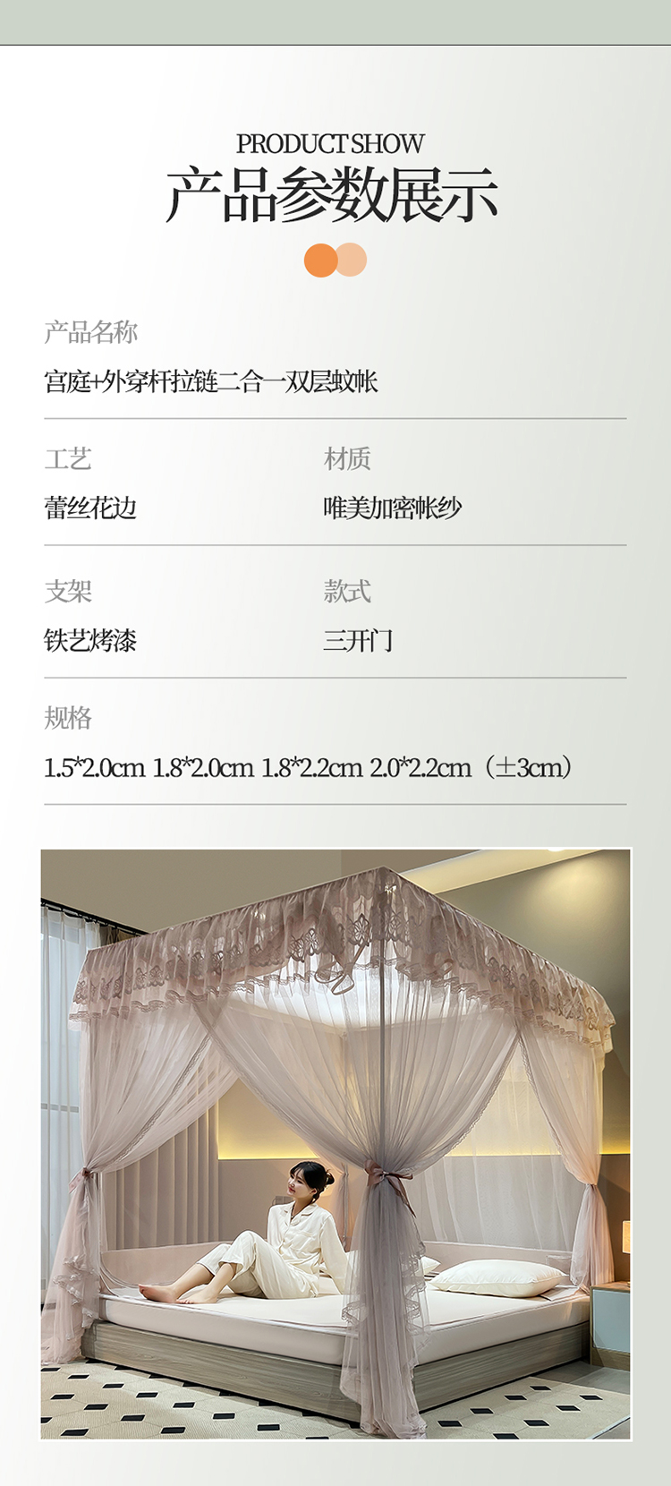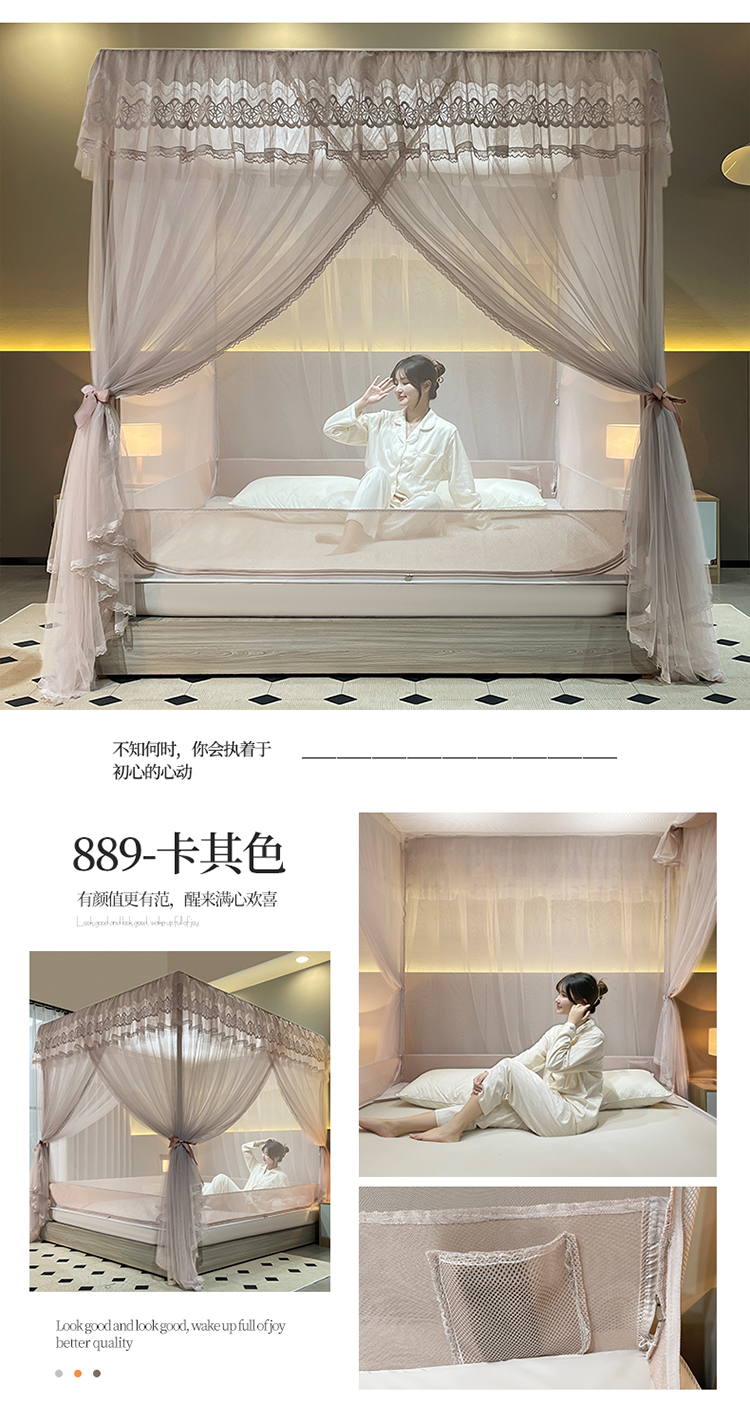 商品名称:夏彩88568宫廷蚊帐+U型外穿杆二合一烤漆床笠拉链蚊帐889-卡其色