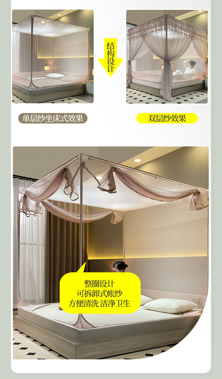 (总)夏彩 2025新款五面保暖坐床拉链四季款蚊帐-88631,绿雅灰,藕玉色,香槟色,保暖顶-香槟色,保暖顶-藕玉色,保暖顶-绿雅灰