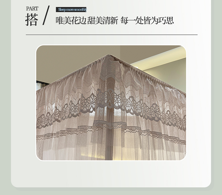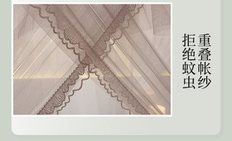 (总)夏彩 2025新款蕾丝U型防摔坐床蚊帐-88630,绿雅灰,藕玉色,香槟色