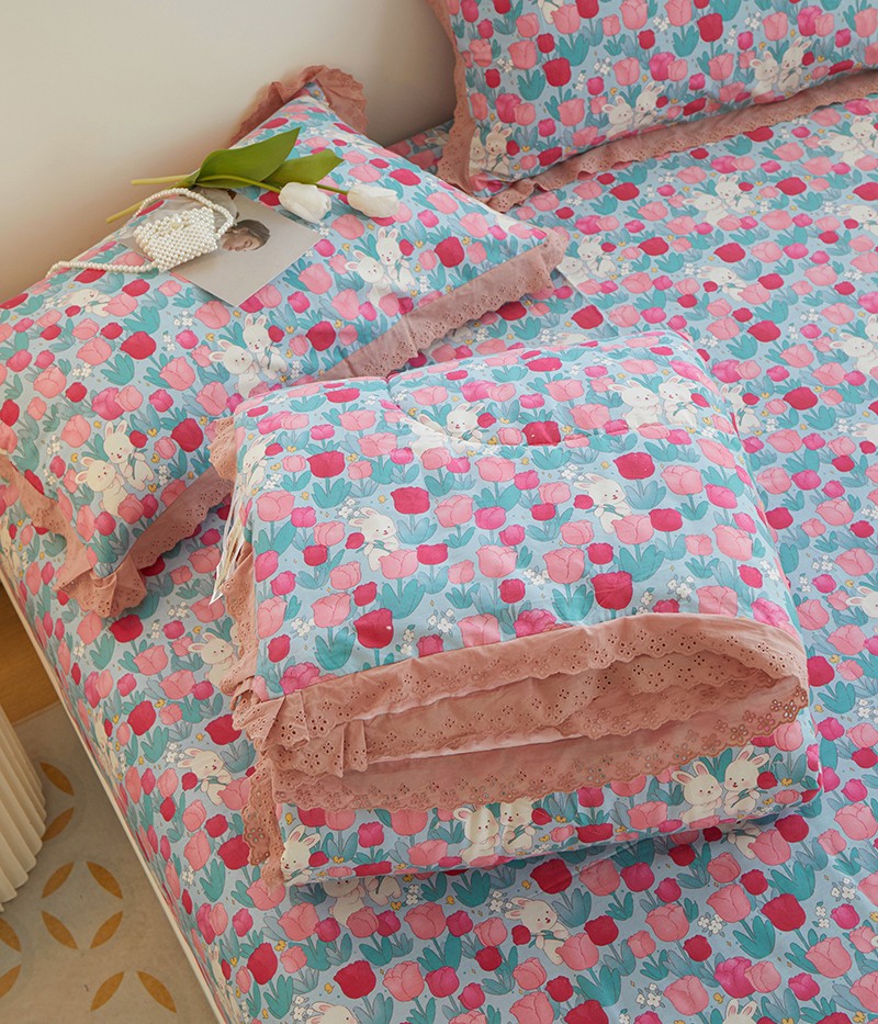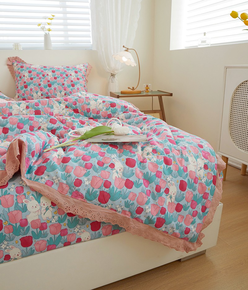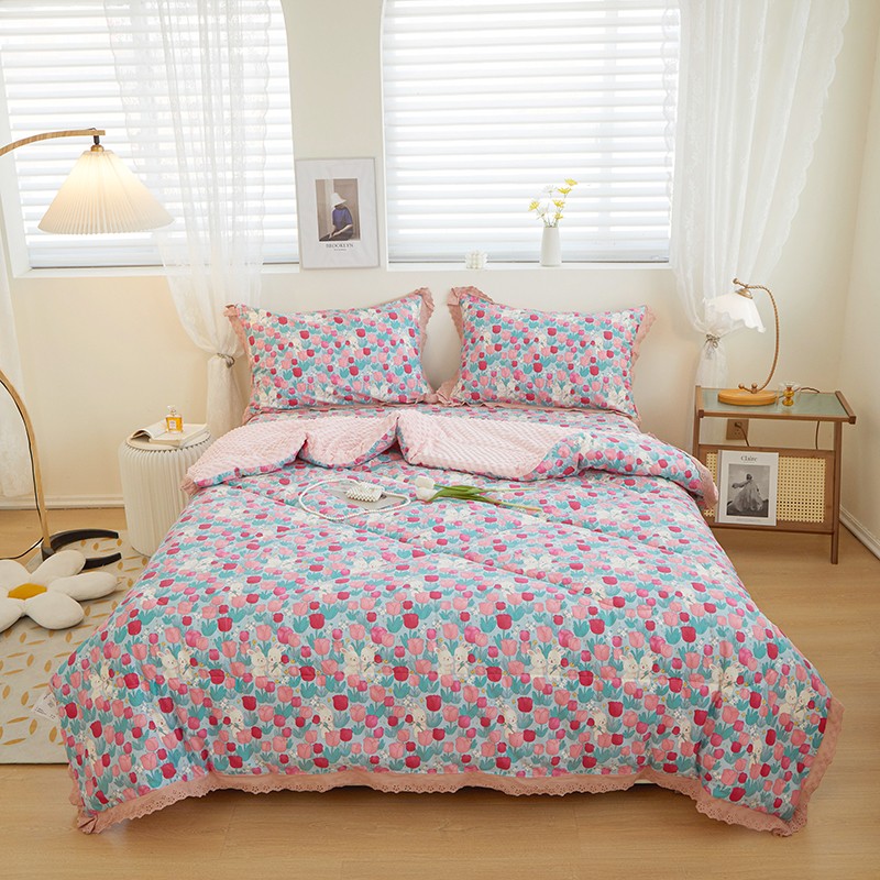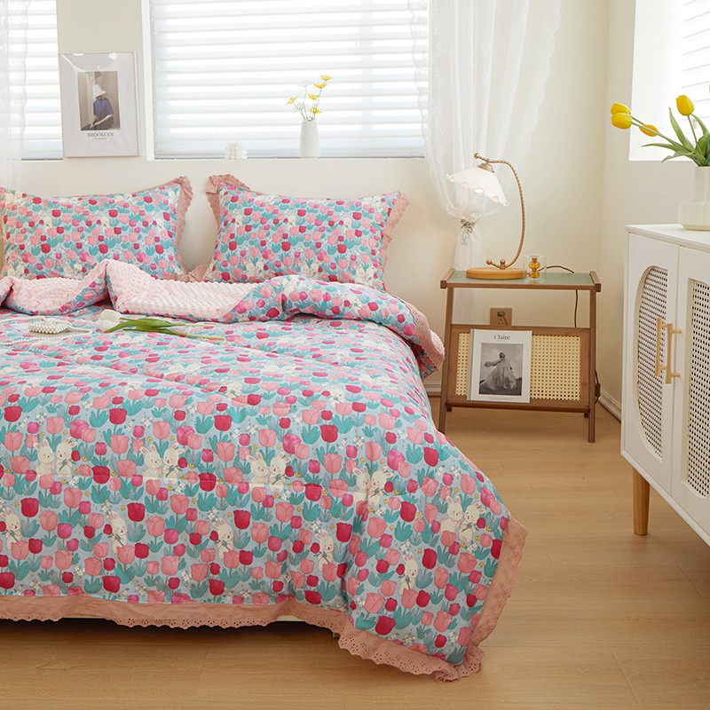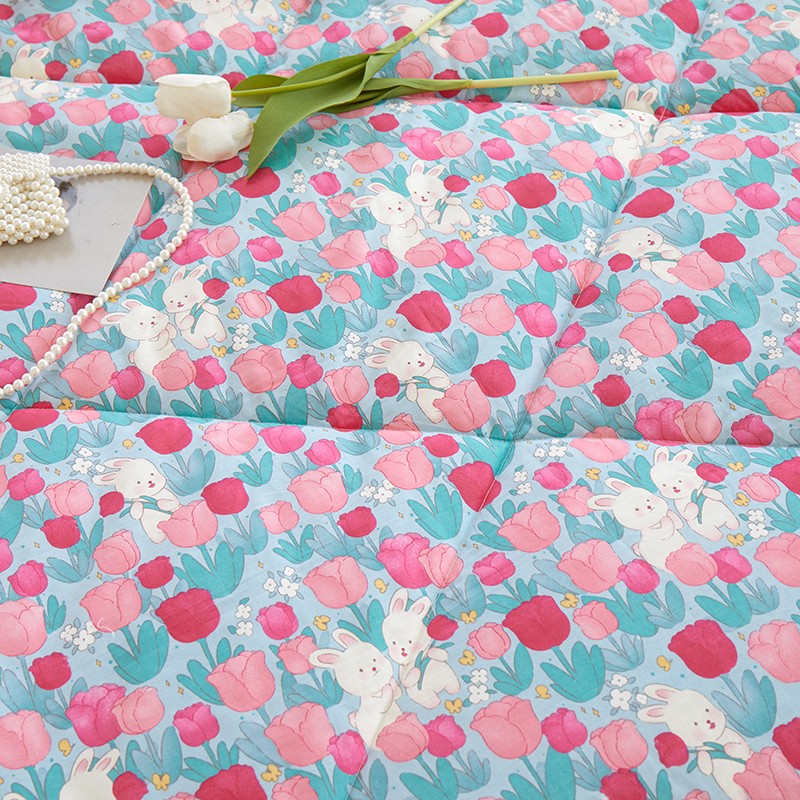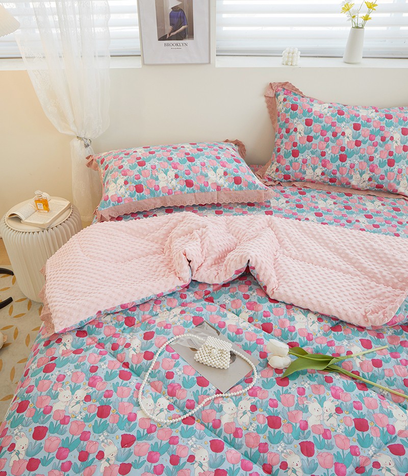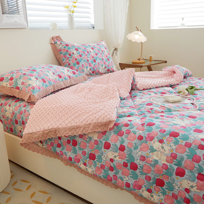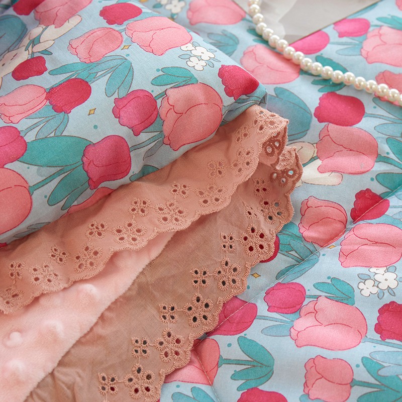 • 91家纺网 家纺一手货源 找家纺 一米阳光 2023新款纯棉蕾丝豆豆被被子被芯 乖乖兔