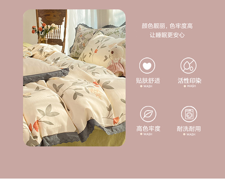 (总)艾米 2023新款水洗棉麻双层纱系列四件套,暗香,饼干熊,菠萝兔,沉香,繁花,芳华,花海,花满夫橘色,快乐熊,流年,梦萝,千寻,牵牛花豆沙,牵牛花蓝,水墨,四叶草,童趣乐园,薰衣草豆沙,薰衣草紫,月野