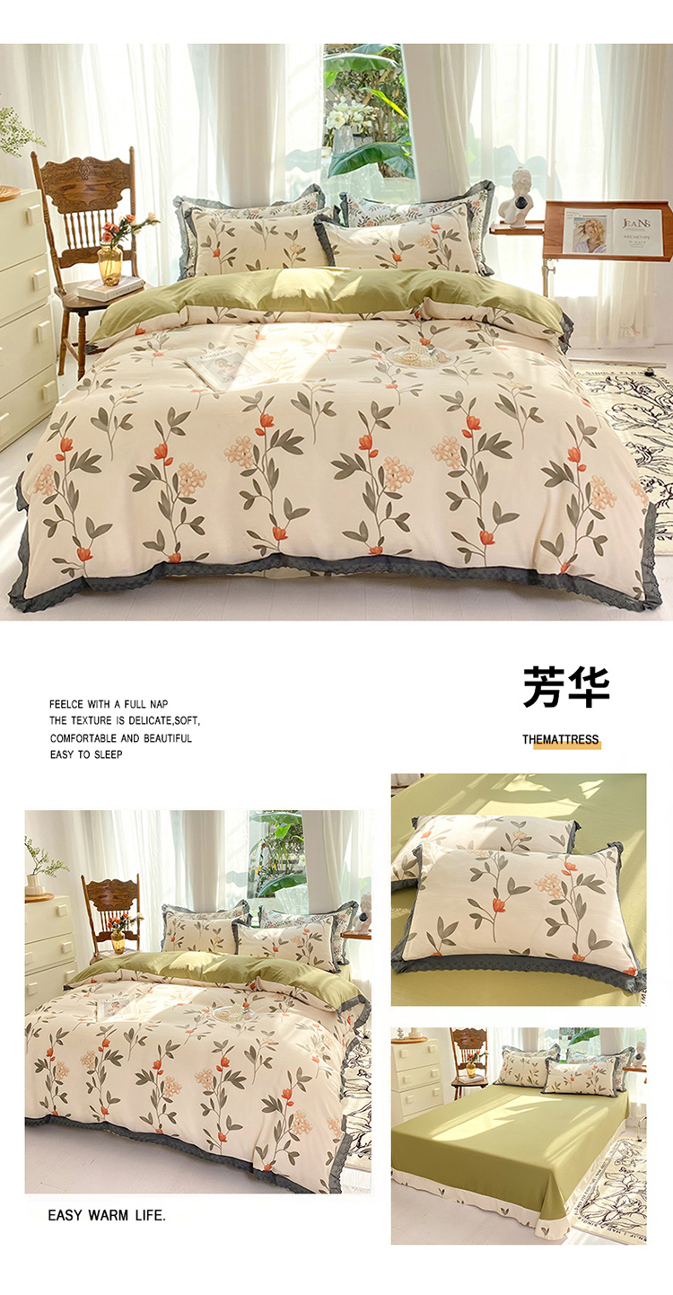 (总)艾米家居 2025秋冬新款牛奶绒泡泡印花花边四件套,豆沙条纹粉,蝴蝶花,太阳花