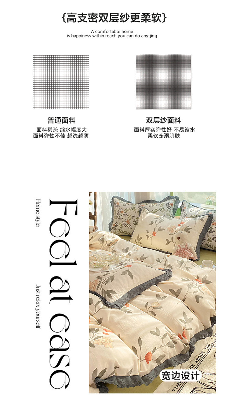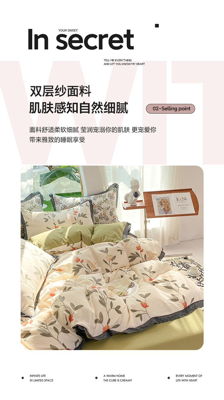 艾米 2023新款水洗棉麻双层纱系列四件套 芳华