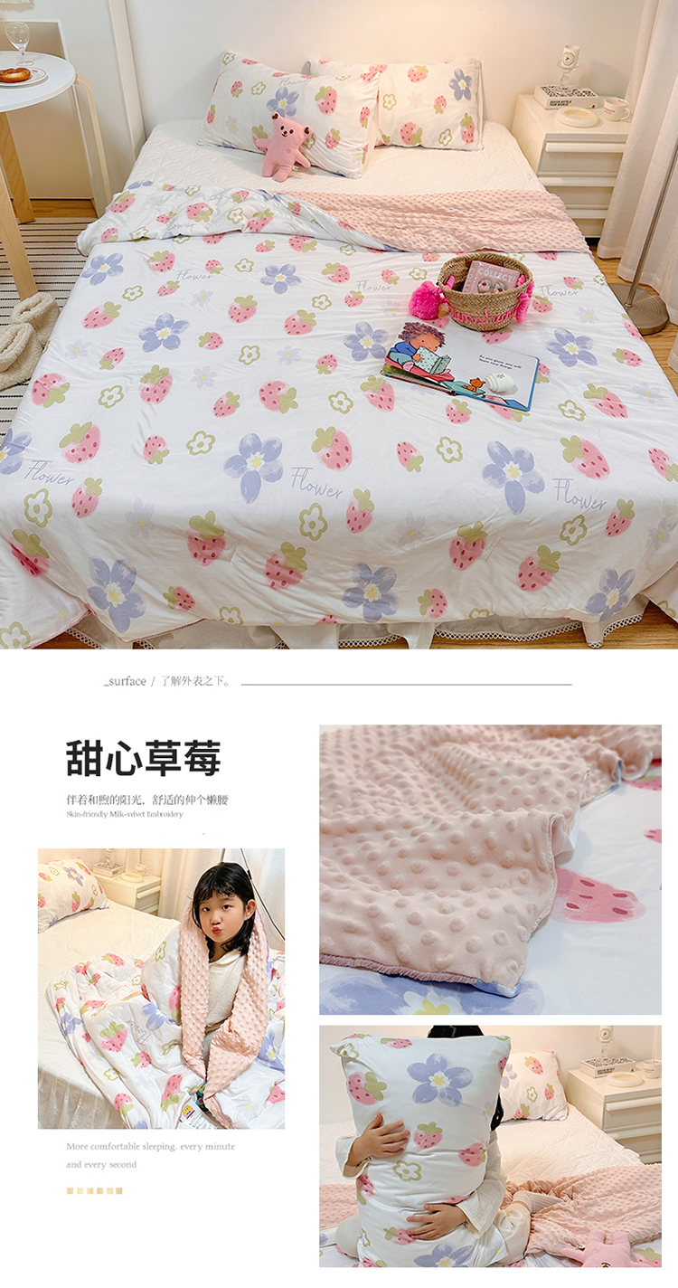 商品名称:有货2023爆款春夏夏凉被小清新春秋被卡通针织棉豆豆被 甜心草莓
