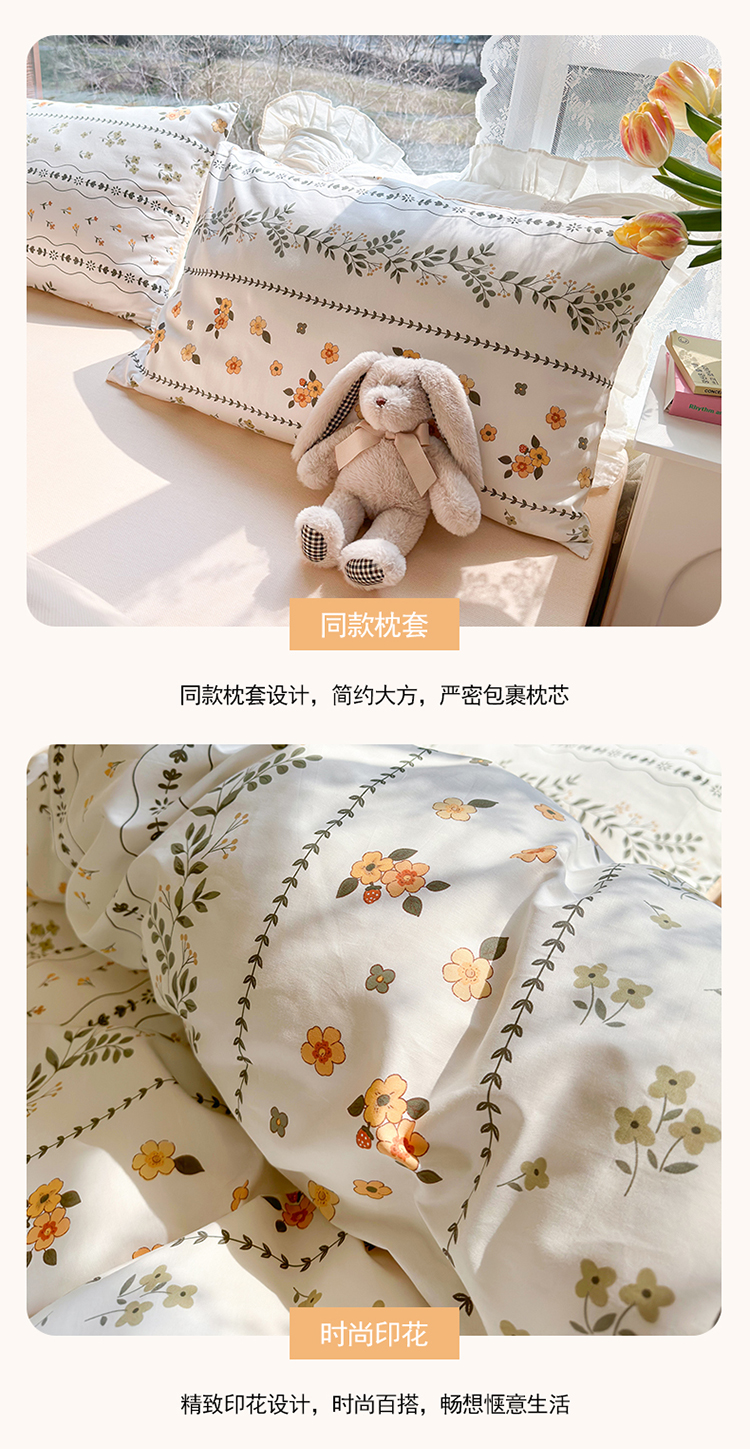 当前位置: 91家纺网 > 商品网购 > 床品套件 > 四件套 > 全棉普通四件套 > 琪格格2023新款全棉40支13372小清新四件套系列 春晓