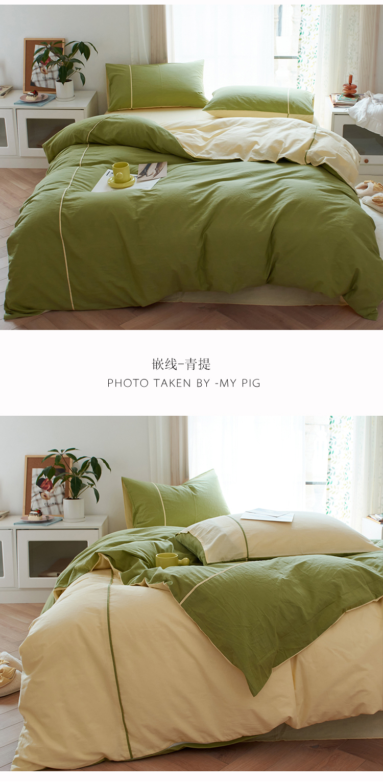 双拼全棉水洗棉纯棉四件套ins简约北欧纯色床笠款套件,双拼白+浅蓝,双拼白+薇薇紫,双拼海蓝+浅蓝,双拼琥珀+鹅黄,双拼焦糖+奶茶,双拼螺旋藻绿+鹅黄,双拼奶茶+鹅黄,双拼牛油果+鹅黄,双拼浅蓝+鹅黄,双拼树莓红+杏仁白,双拼水绿+螺旋藻绿,双拼豌豆青+杏仁白,双拼杏仁白+螺旋藻绿,薇薇紫+杏仁白,浅灰+杏仁白,双拼藏青+浅灰,双拼花青灰+浅灰,双拼霁色+浅灰