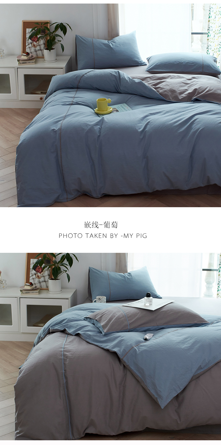 北欧风ins纯棉水洗棉床四件套全棉简约被套床单上三件套床笠,白色+藏青,藏青+浅蓝,鹅黄+螺旋藻绿,鹅黄+牛油果,螺旋藻绿+鹅黄,千夏紫+水貂灰,千夏紫+薇薇紫,薇薇紫+浅灰,浅蓝+鹅黄,浅蓝+白色,浅蓝+藏青