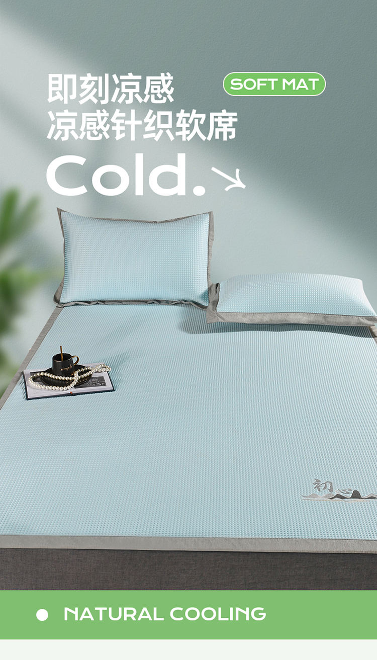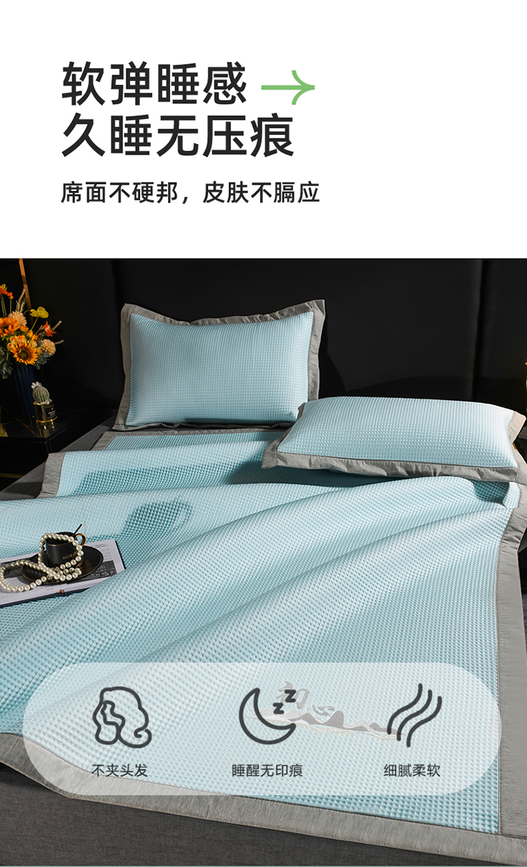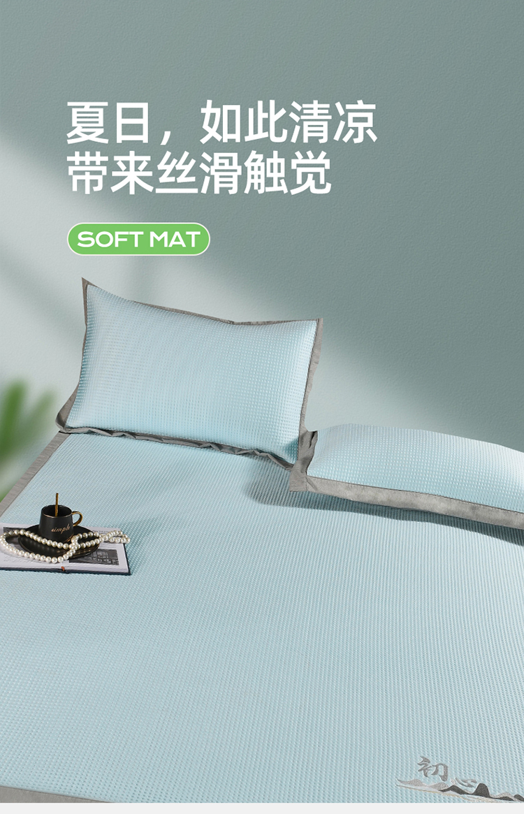 商品名称:席佬大2025新款淳朴风华夫格绣花冰感软席 初心-绿