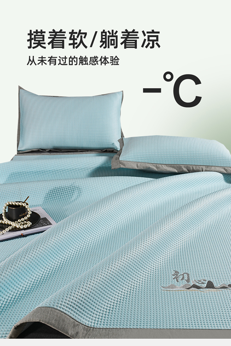 (总)席佬大2025新款淳朴风华夫格绣花冰感软席,初心-粉,初心-咖,初心-蓝,初心-绿