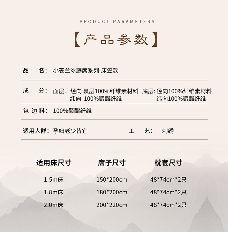(总)小牛席业2023新款小苍兰清香冰藤席系列凉席竹席冰丝席乳胶席,黑咖,金色,绿色,浅蓝,香槟,银灰
