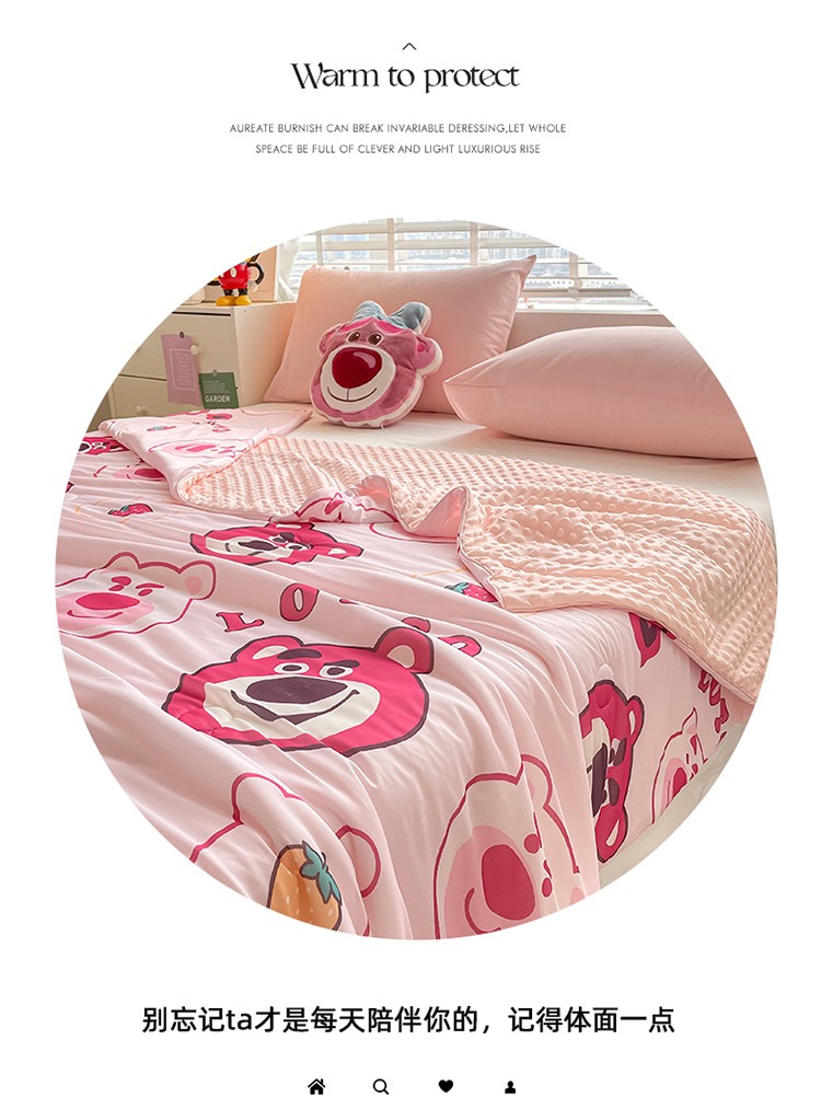 (总)大彩家居2023凉感丝豆豆被夏被被子夏凉被空调被,胖胖草莓熊,爱心米妮,怪兽大学,花花史迪仔,蓝色米奇,维尼森林,草莓花花,荷塘月色,花间密语,花沫,浪漫花园,生如夏花,小熊花花,郁金小熊