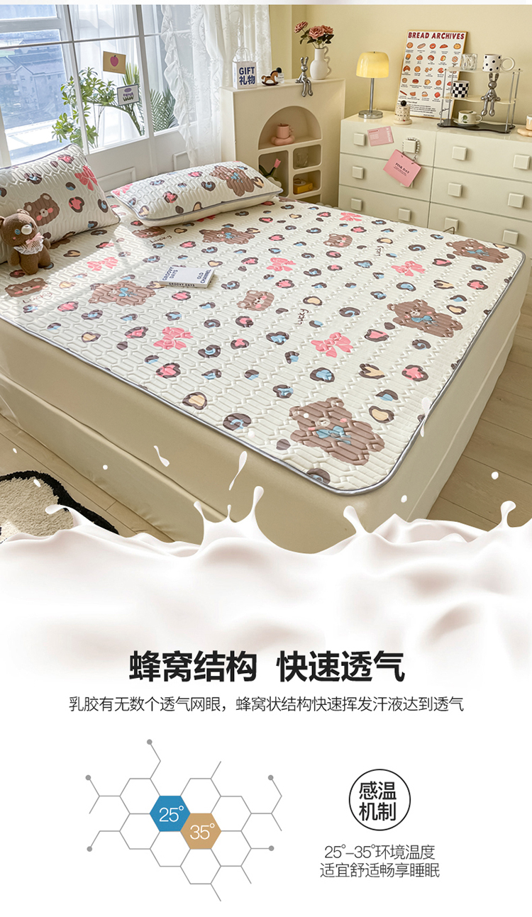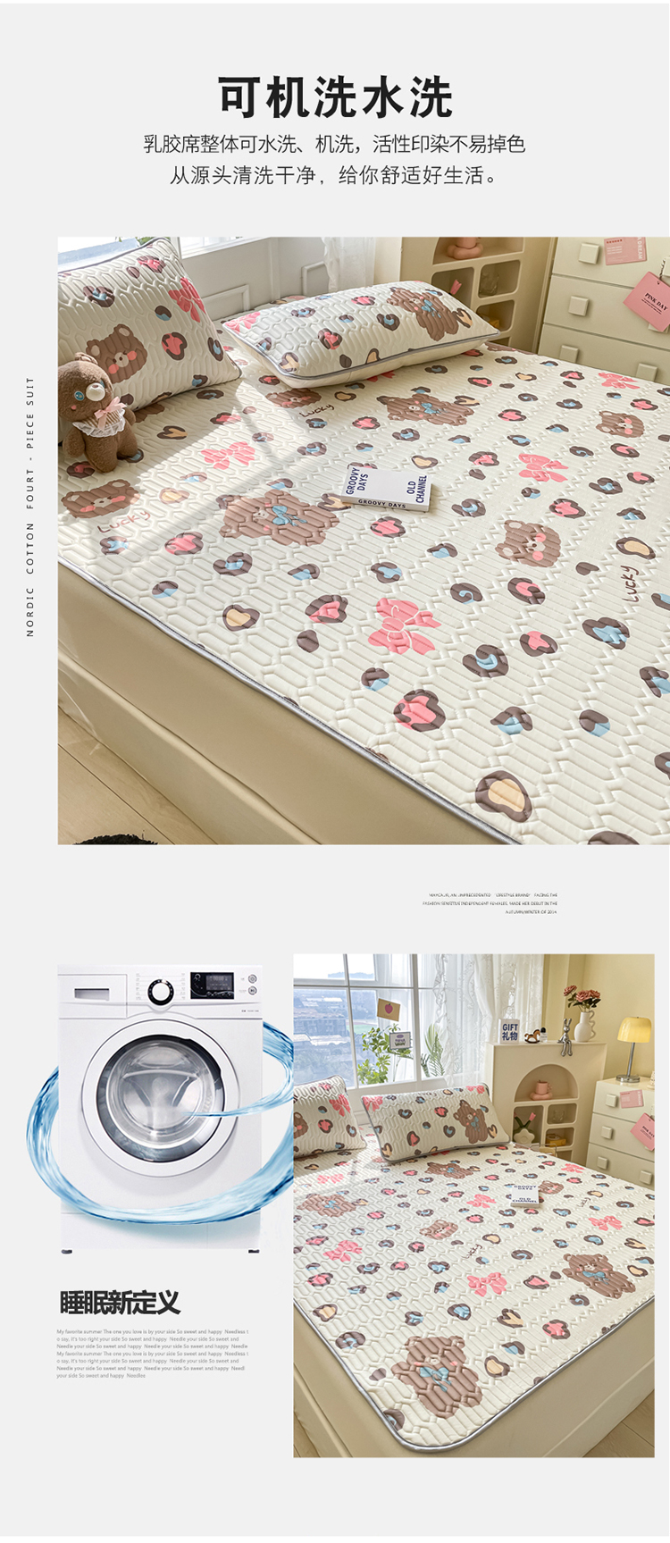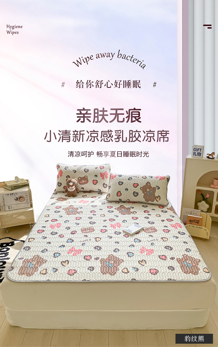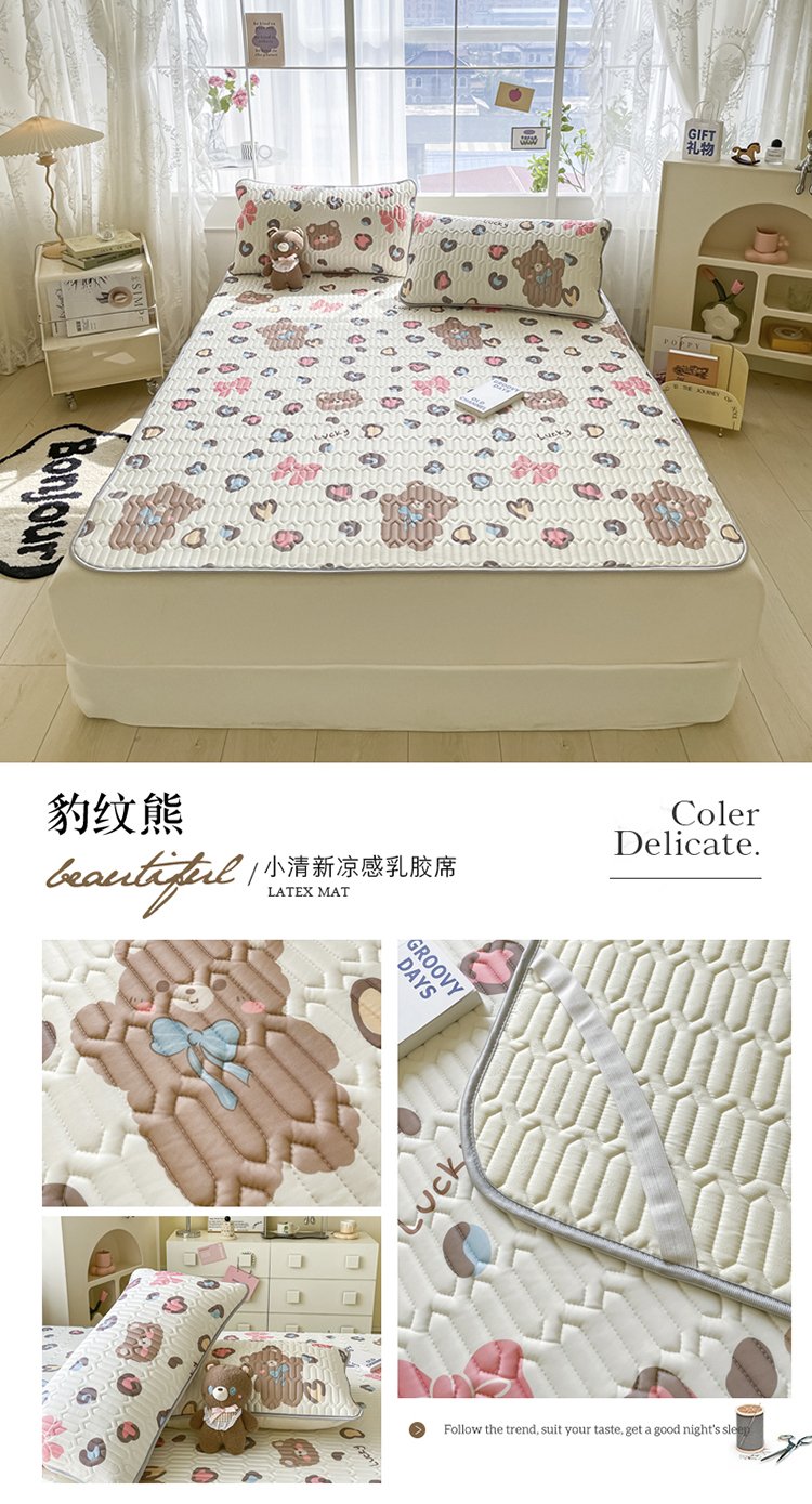 商品名称:金爱家 2023新款小清新凉感丝乳胶凉席三件套 豹纹熊