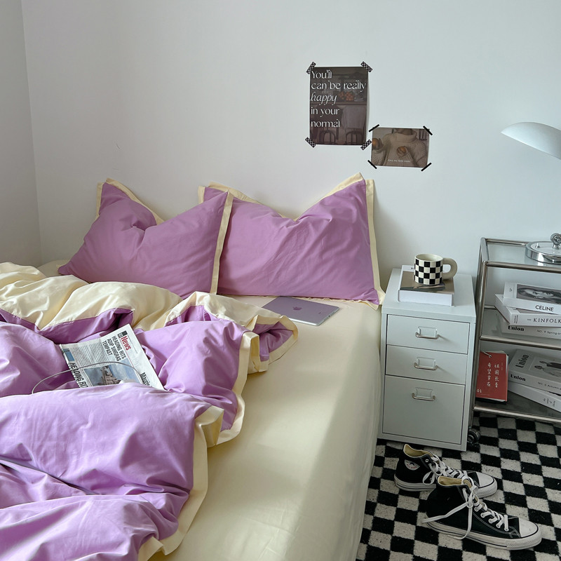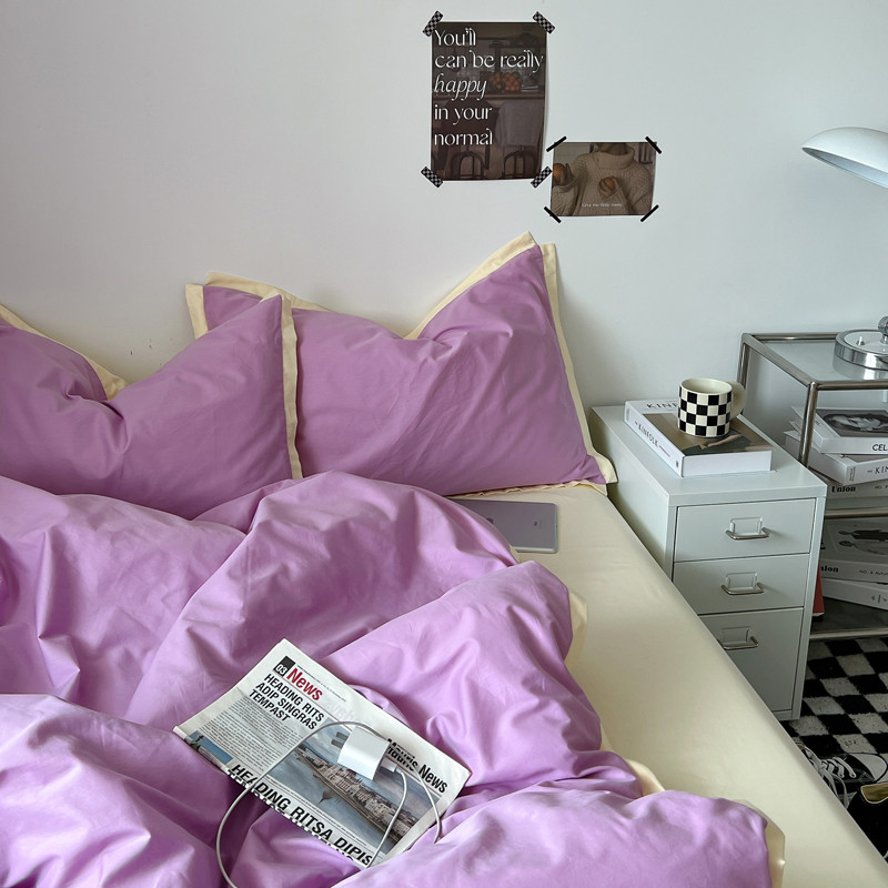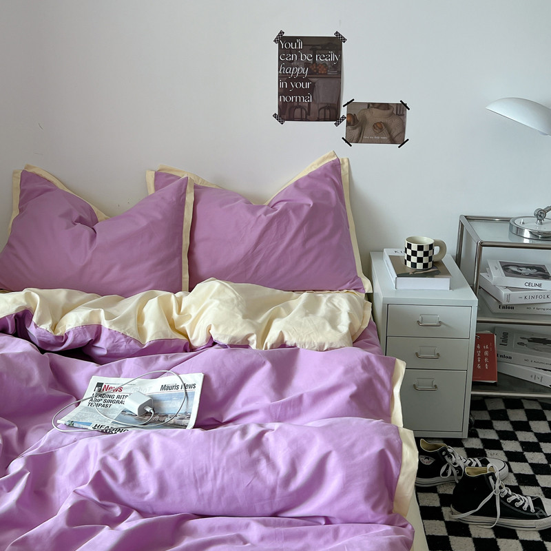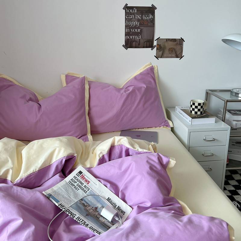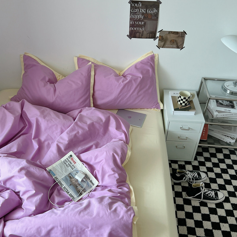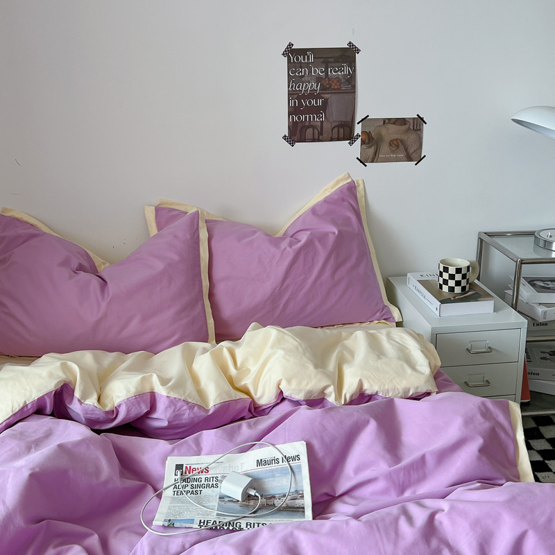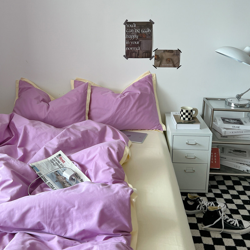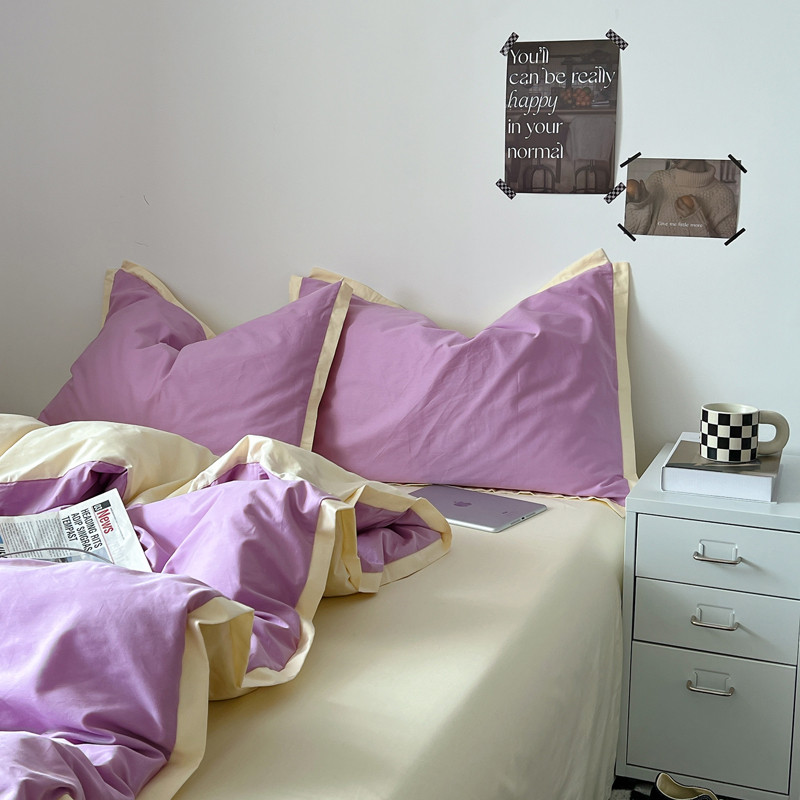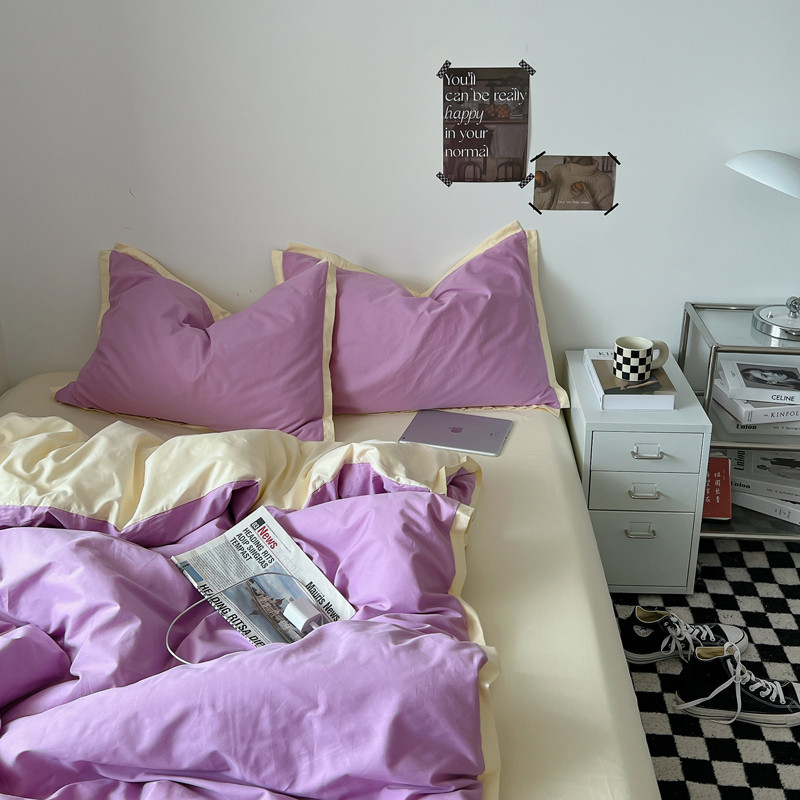 商品名称:安莱生活 2023新款 60贡缎双拼小宽边四件套 紫嫣双拼奶黄