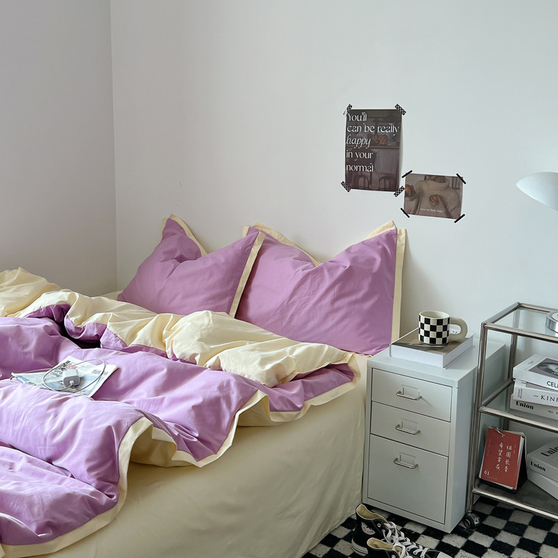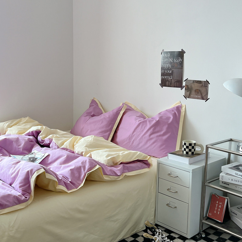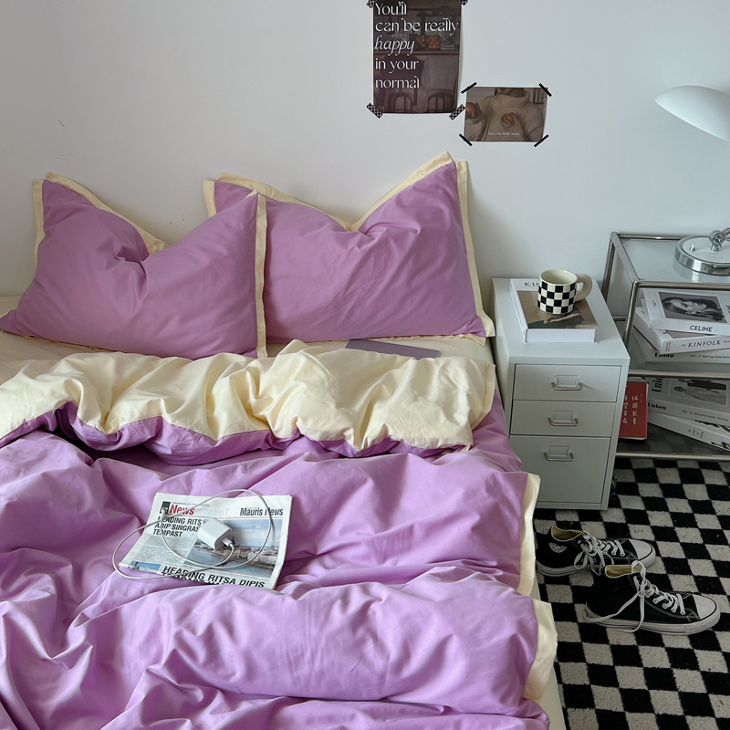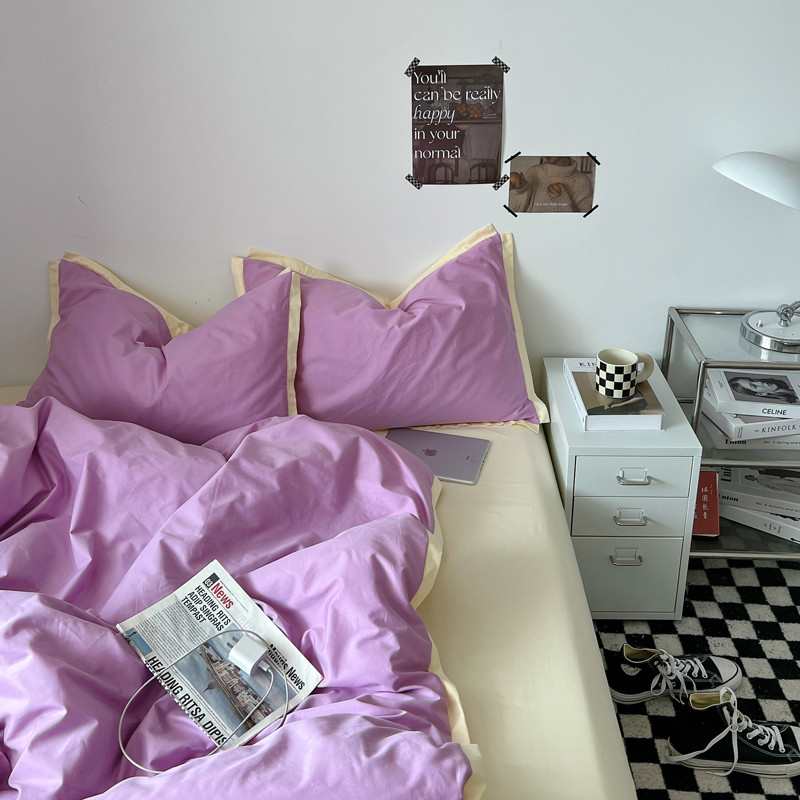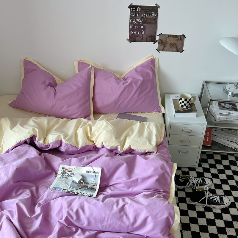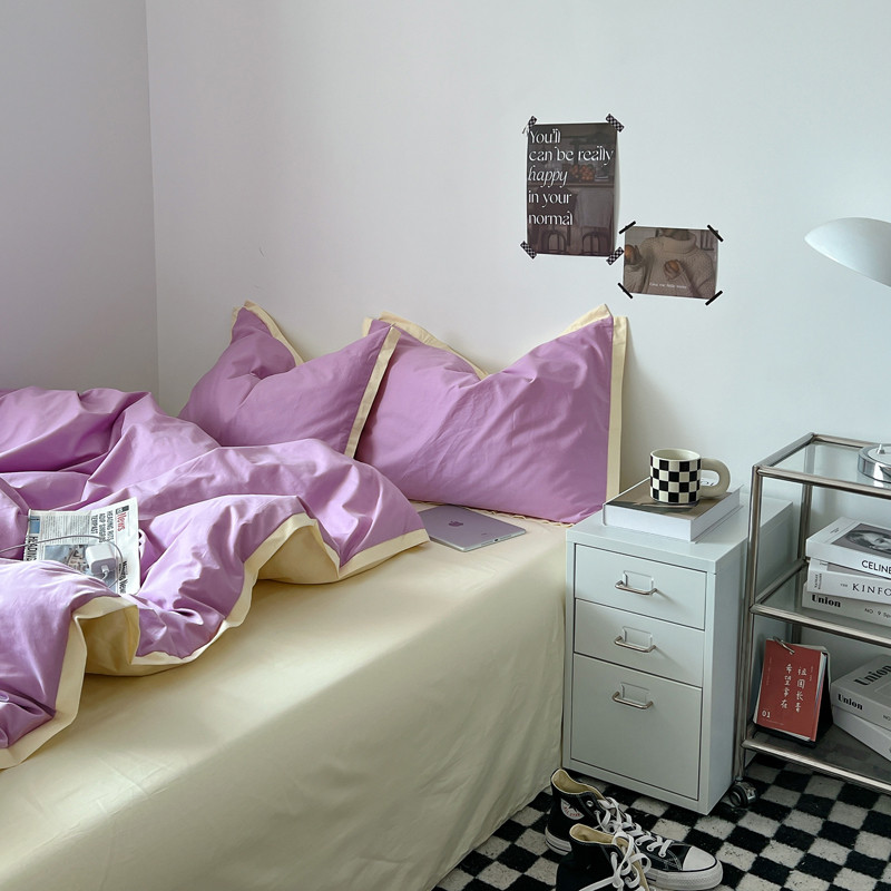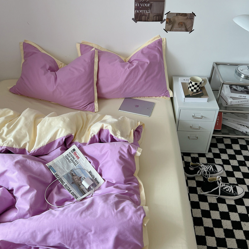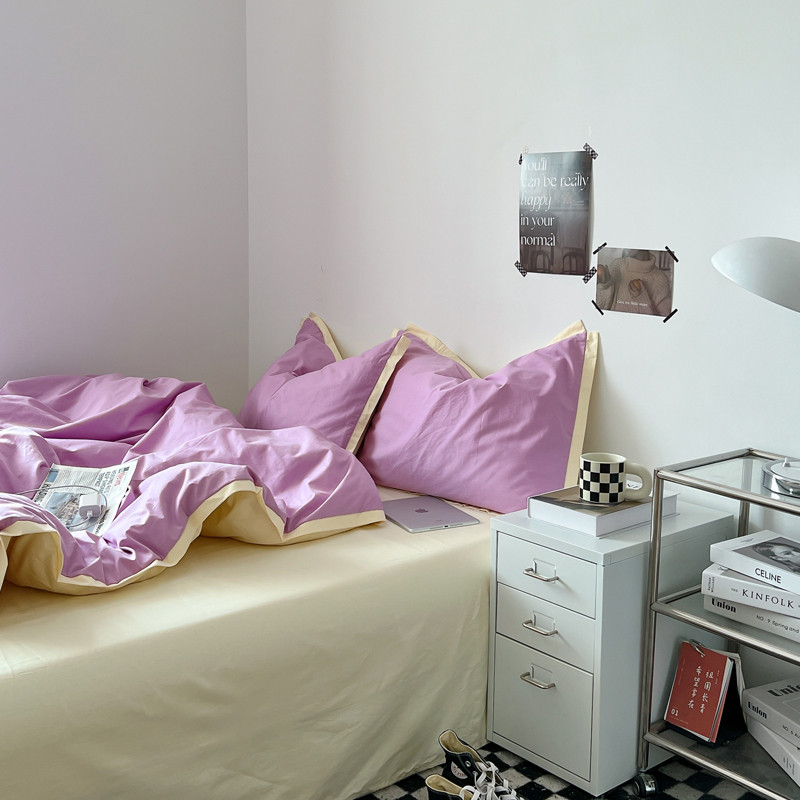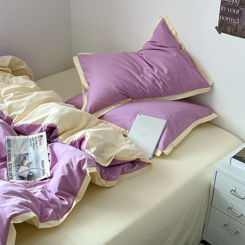 商品名称:安莱生活 2023新款 60贡缎双拼小宽边四件套 紫嫣双拼奶黄