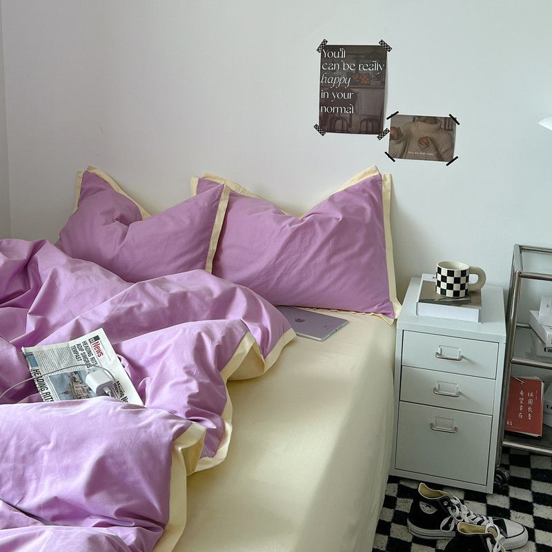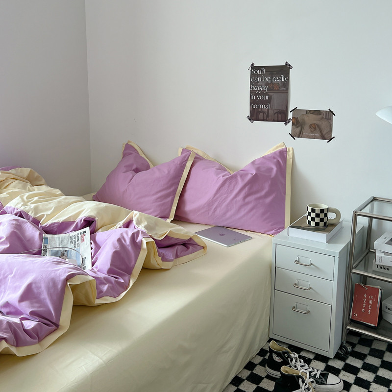 安莱生活 2023新款 60贡缎双拼小宽边四件套 紫嫣双拼奶黄