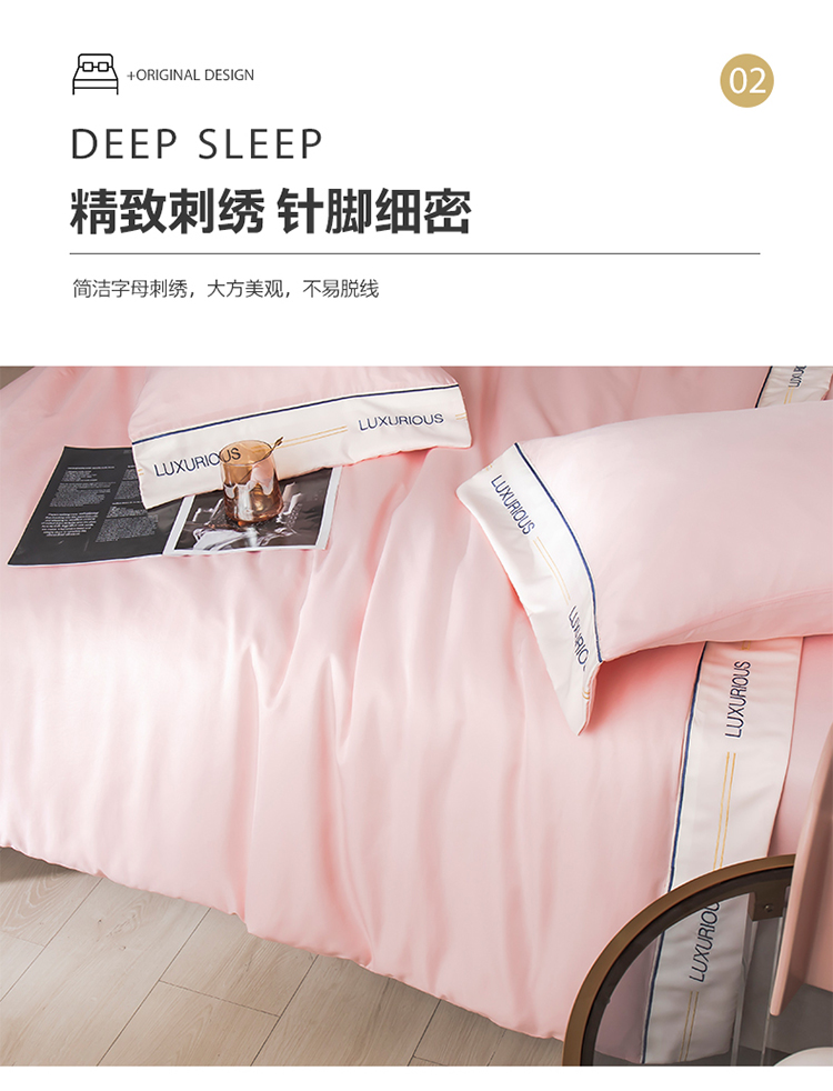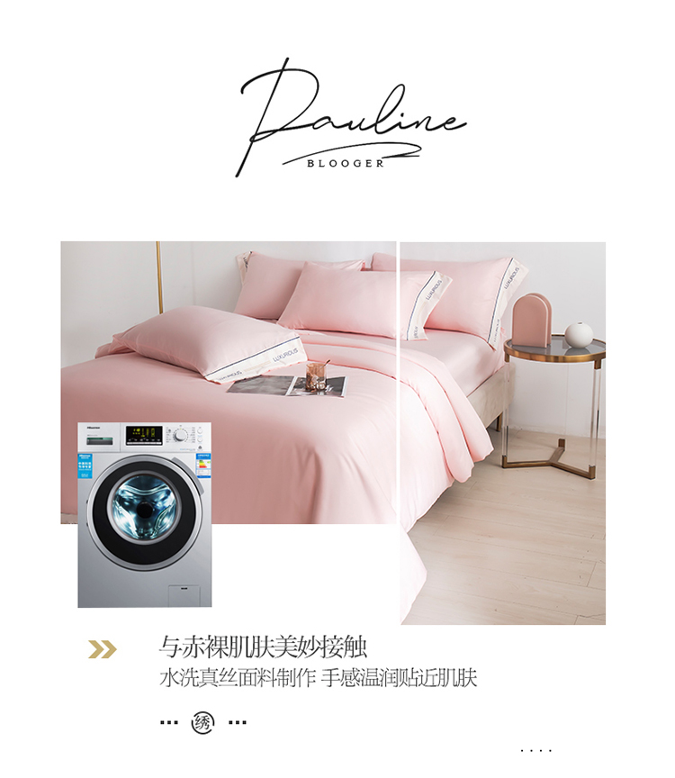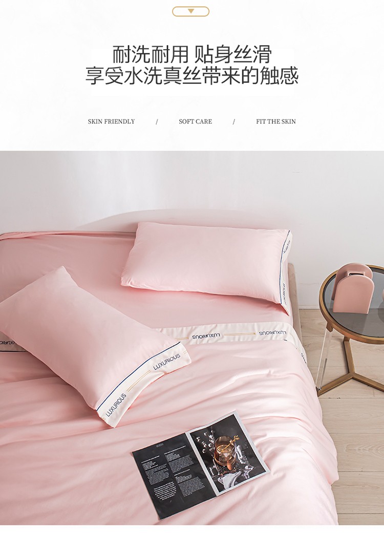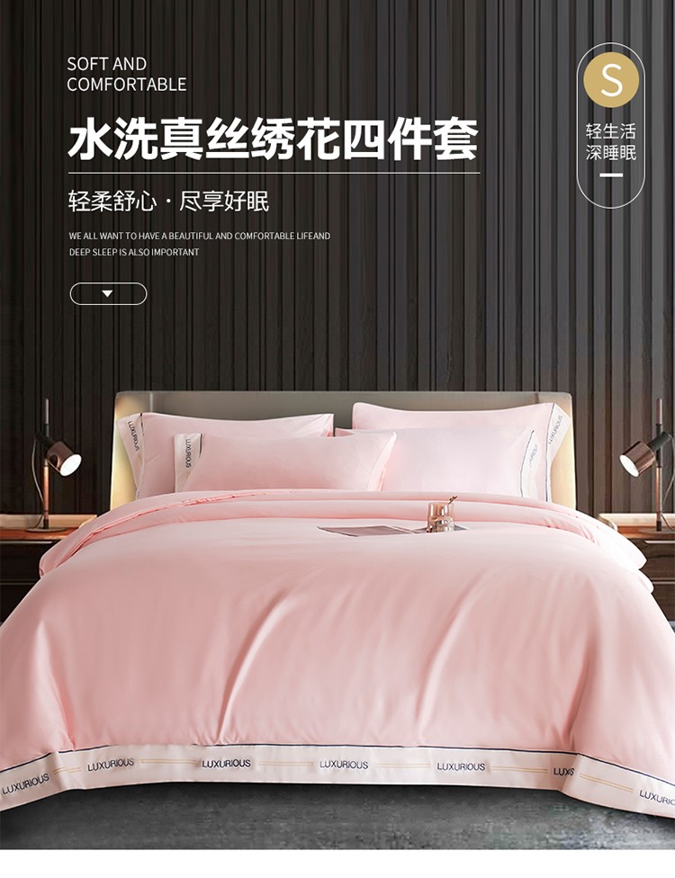 商品名称:米奈 2024年新款水洗真丝贴边绣花四件套-奈利 嫩粉