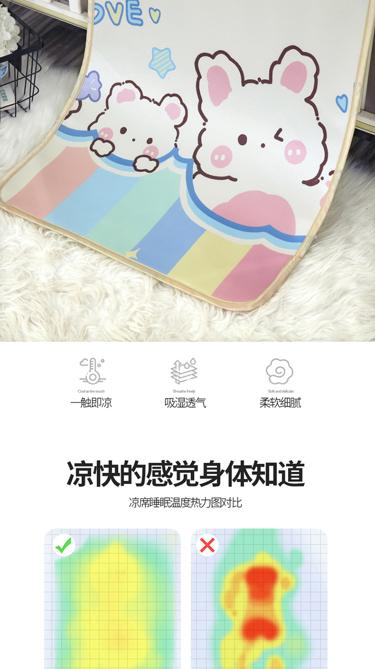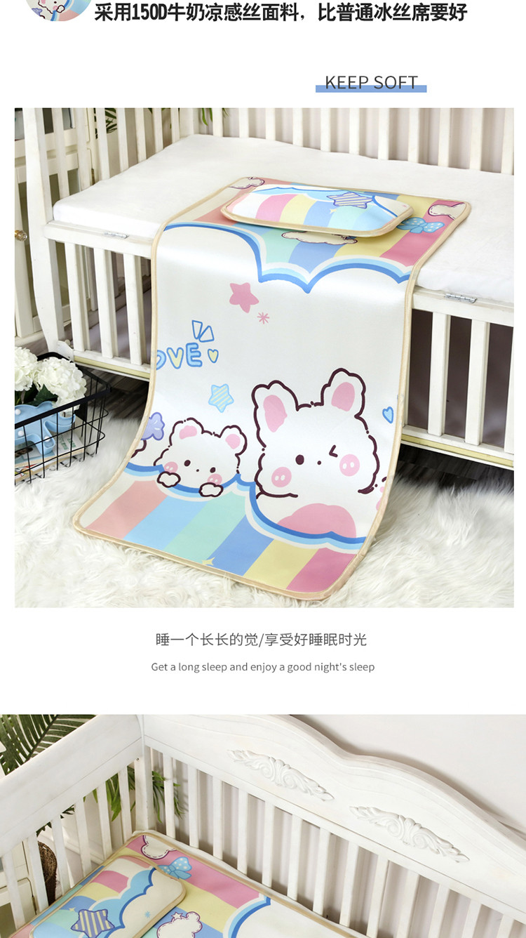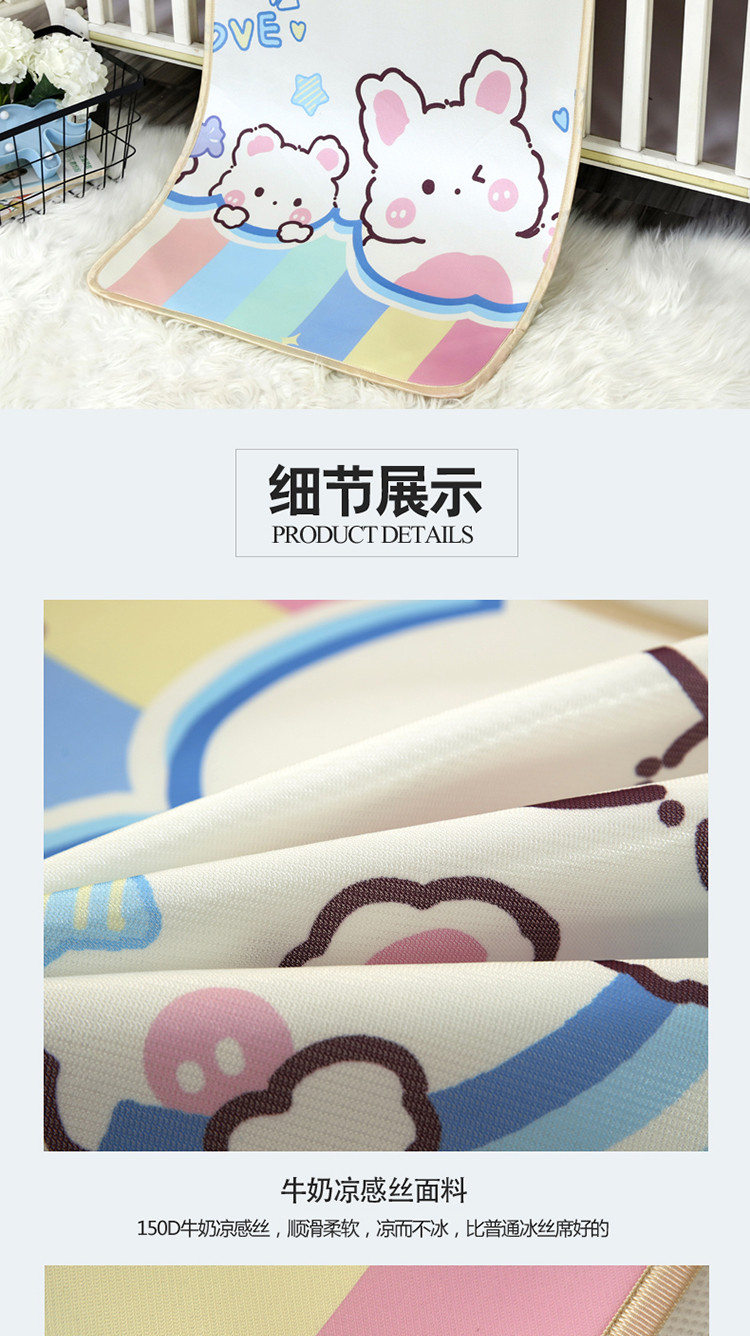 当前位置: 91家纺网 > 商品网购 > 床上用品 > 凉席 > 冰丝席 > 沁童 2023新款儿童卡通凉感丝冰丝凉席两件套 彩虹兔