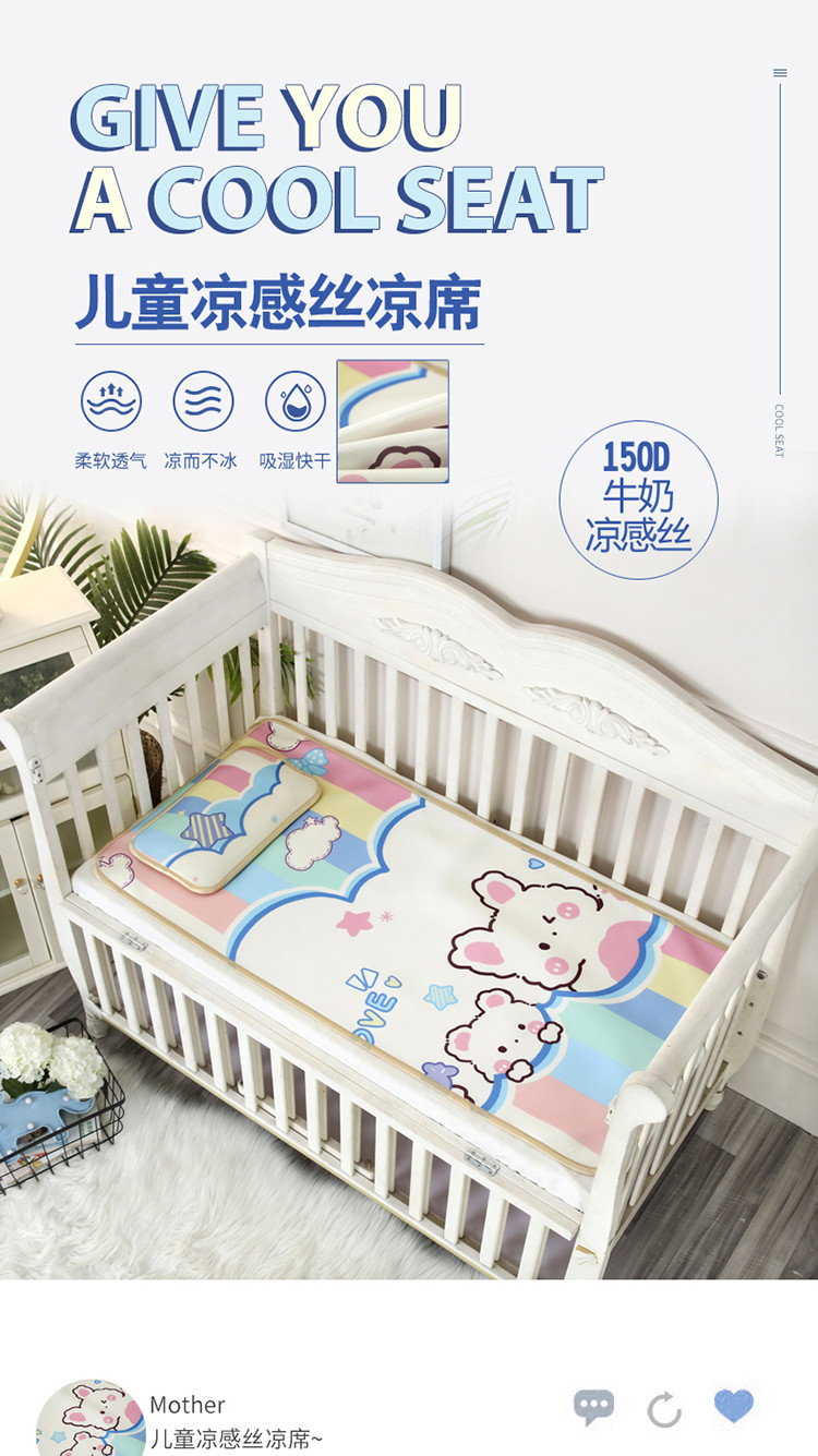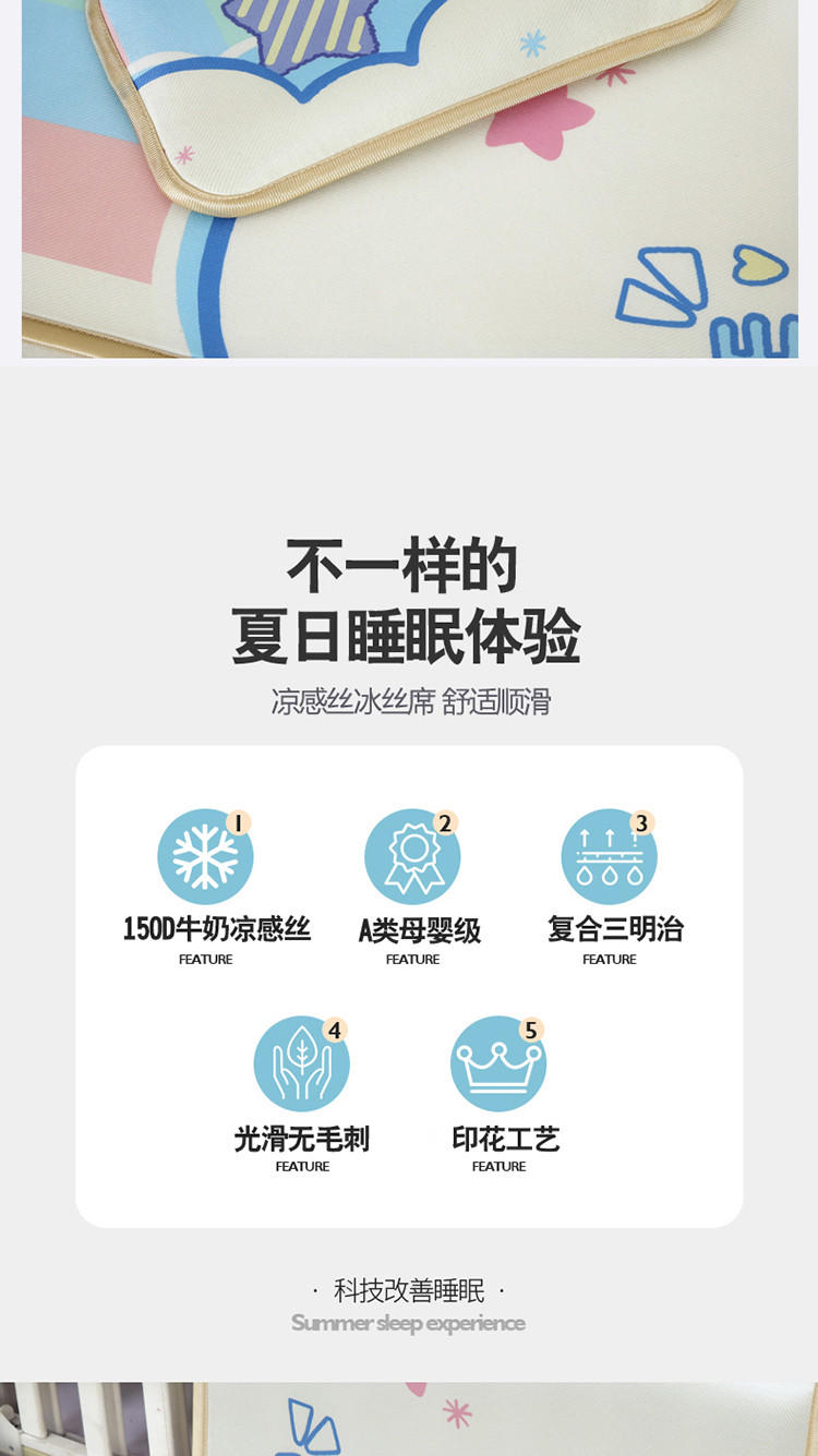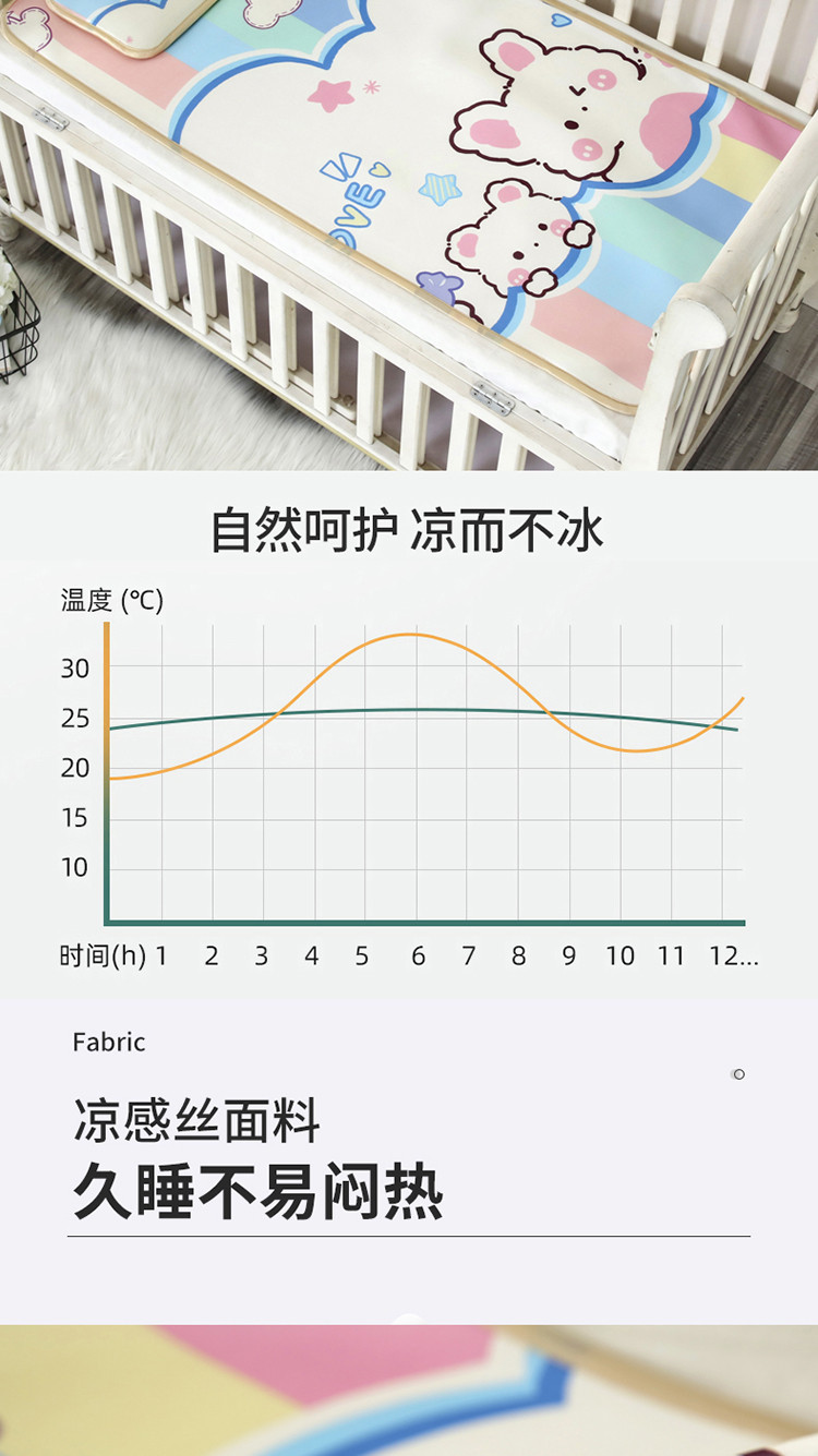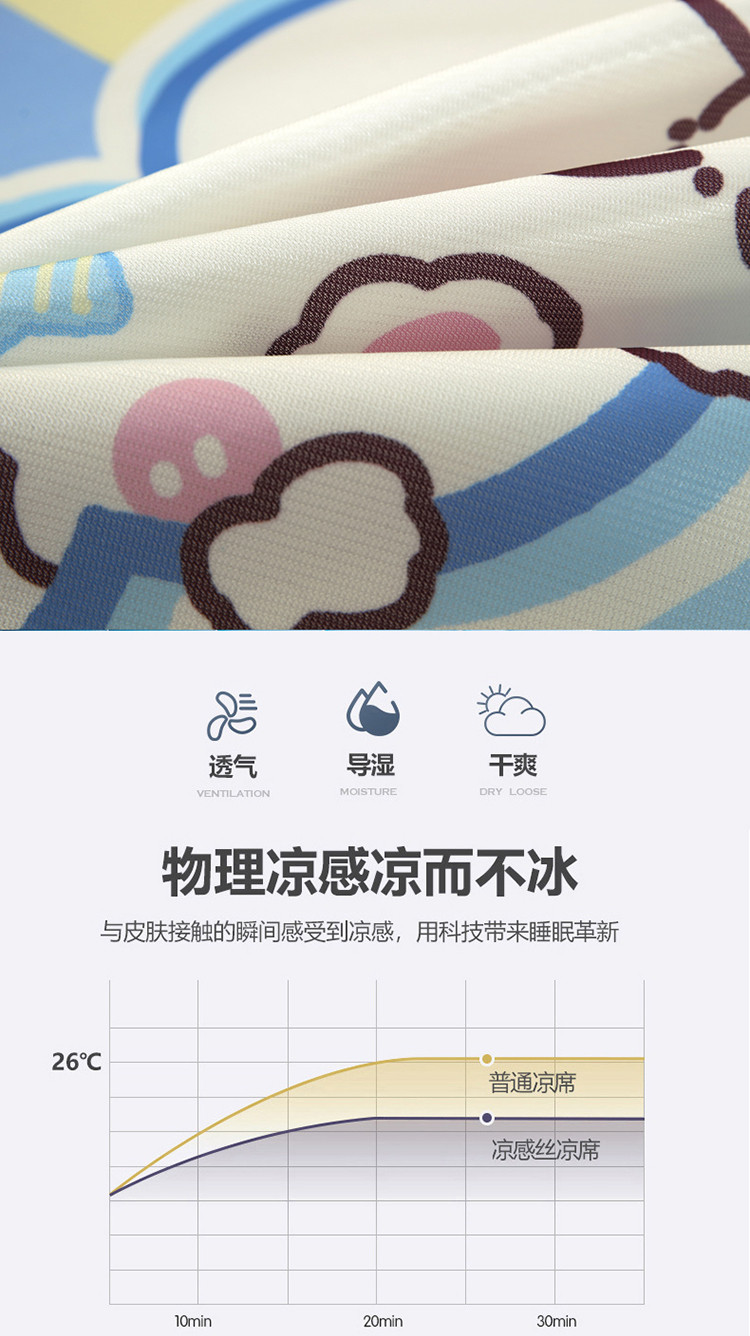 当前位置: 91家纺网 > 商品网购 > 床上用品 > 凉席 > 冰丝席 > 沁童 2023新款儿童卡通凉感丝冰丝凉席两件套 彩虹兔