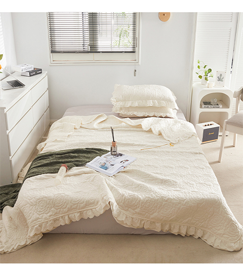 上喜 热卖砂洗砂染全棉玫瑰花床盖 白色