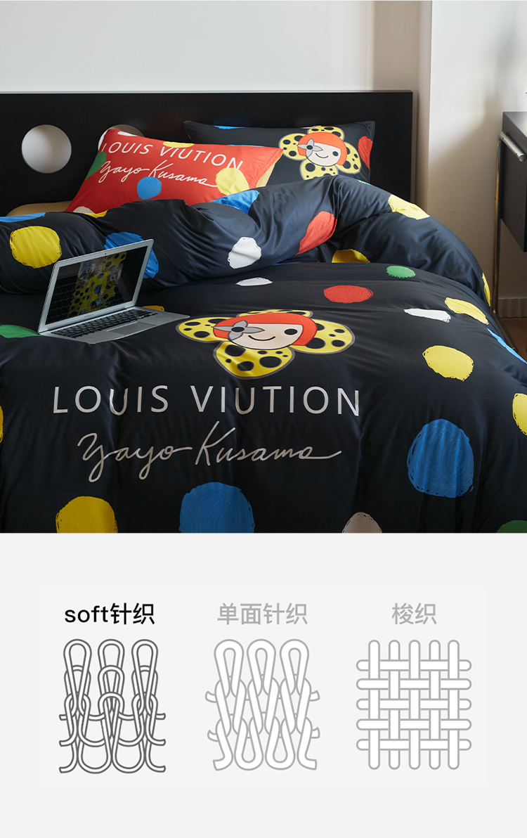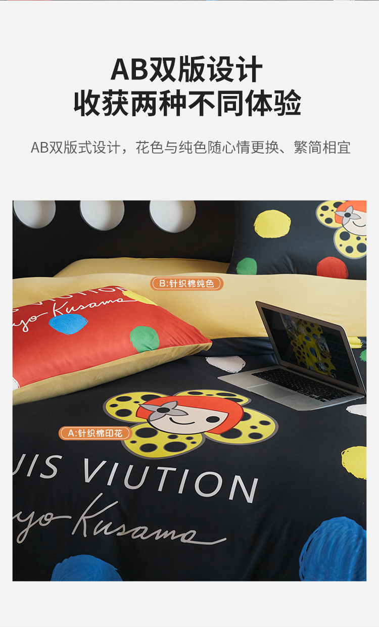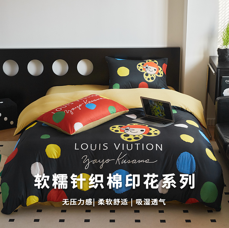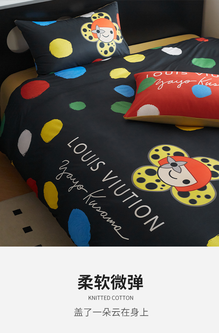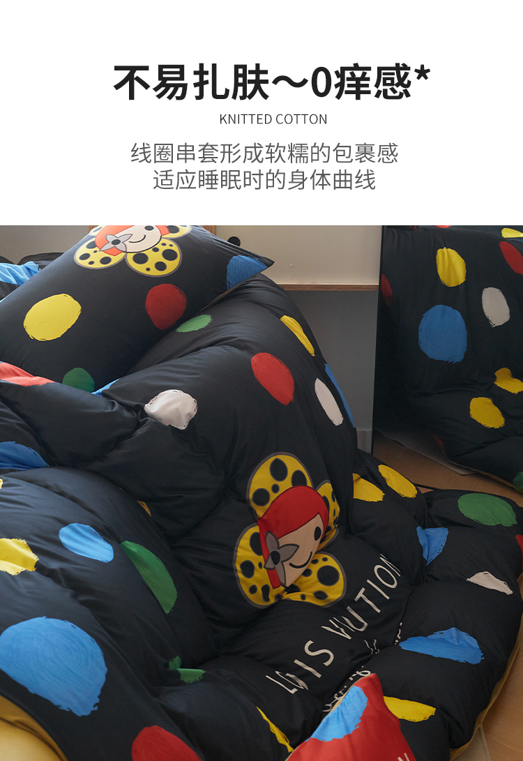 商品名称:色鬼 2023新款针织棉数码印花波点系列四件套 波点黑