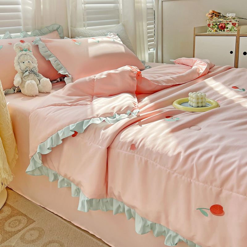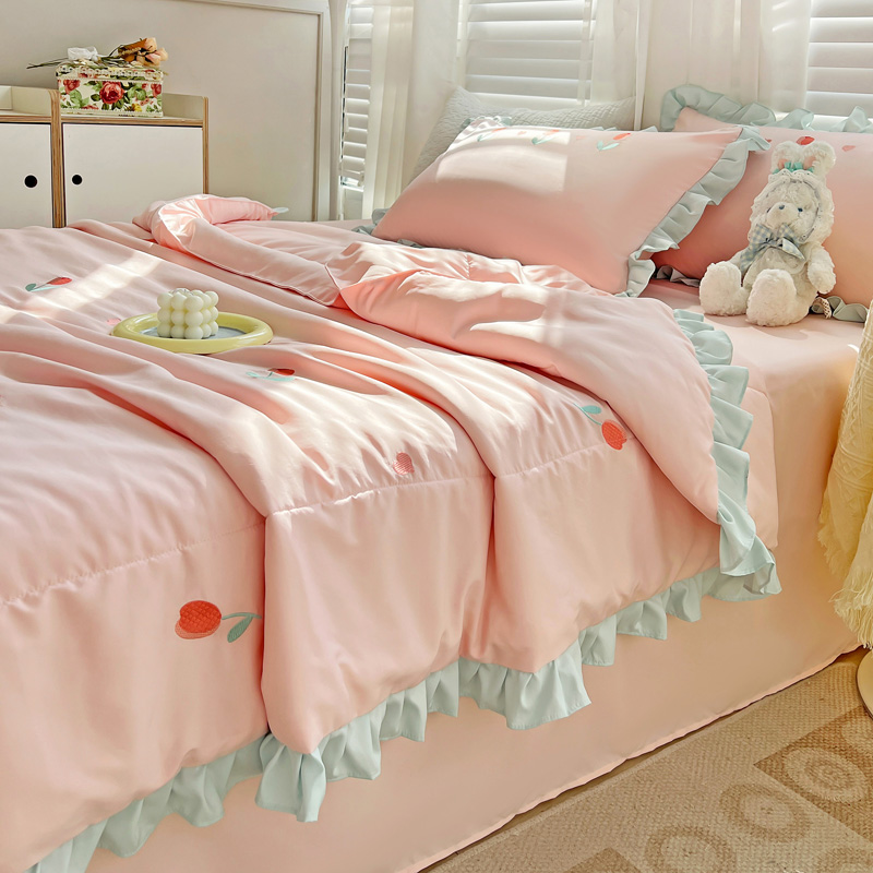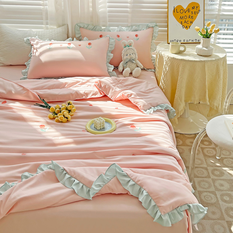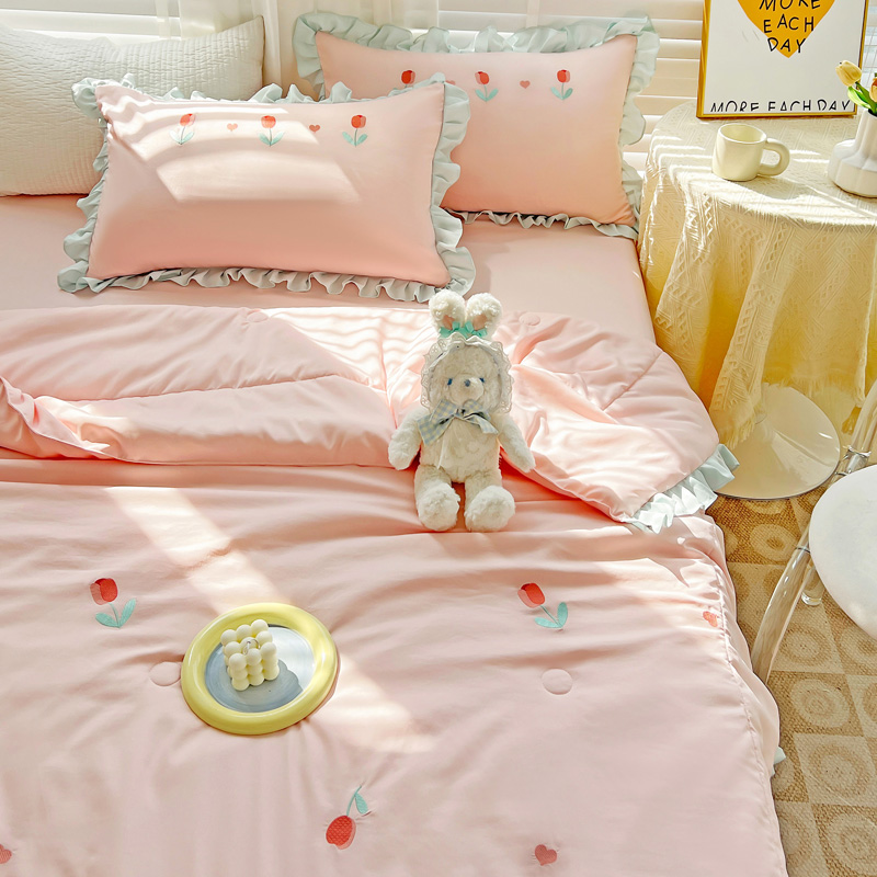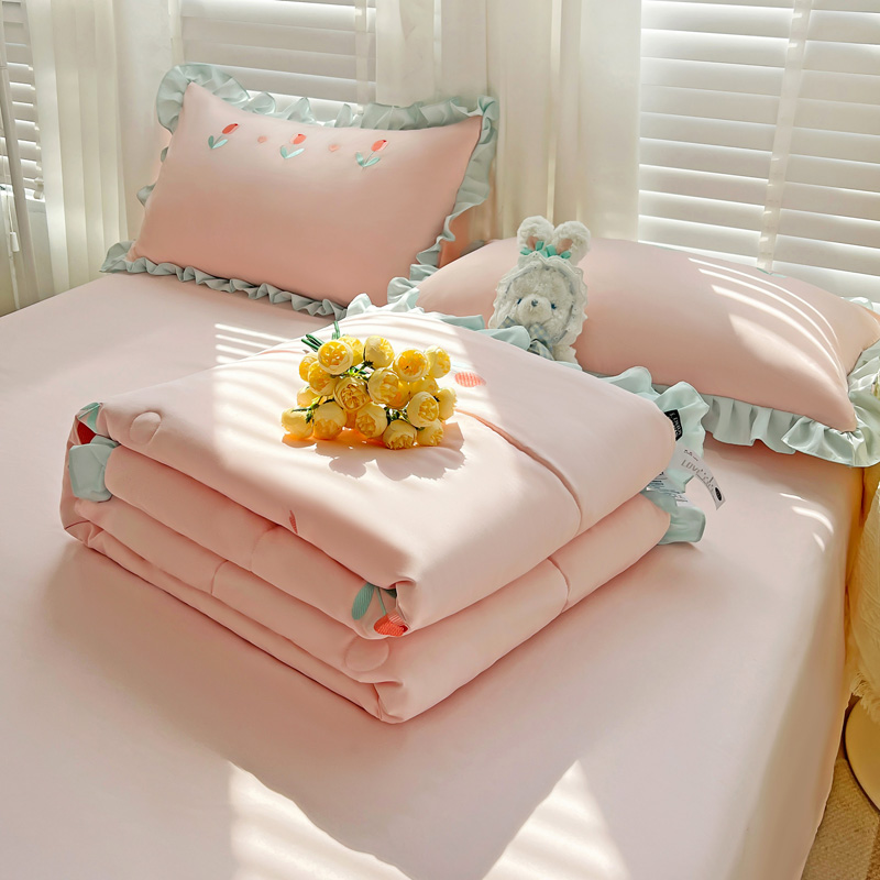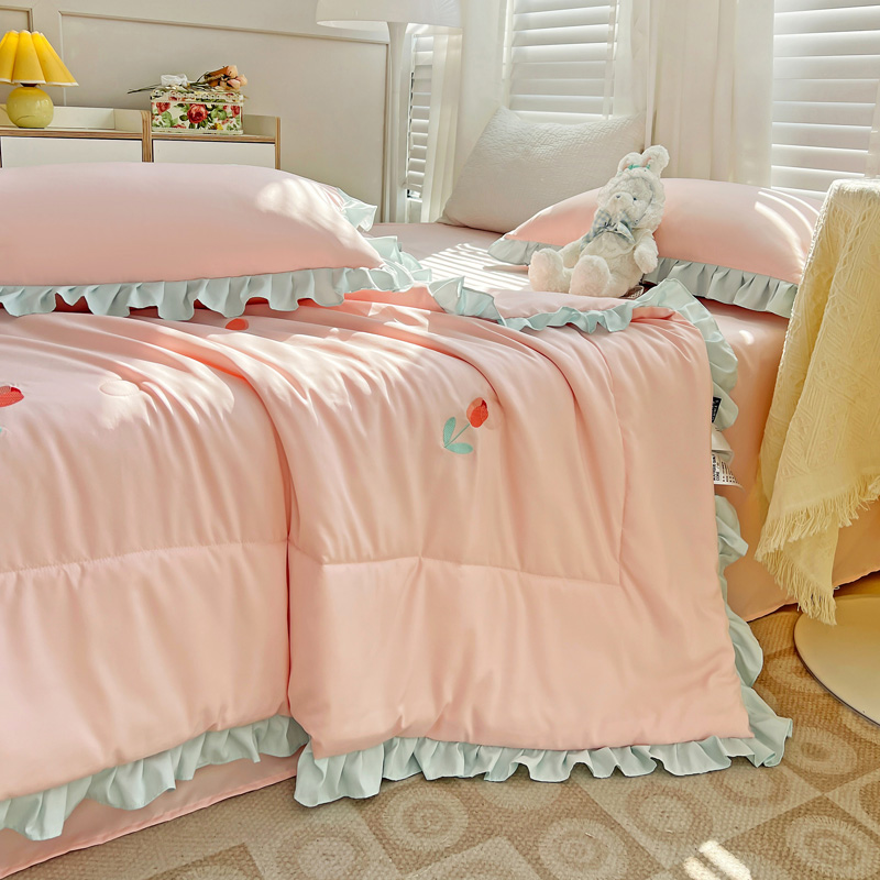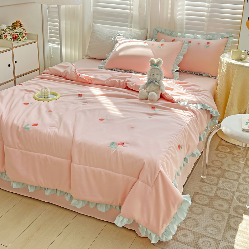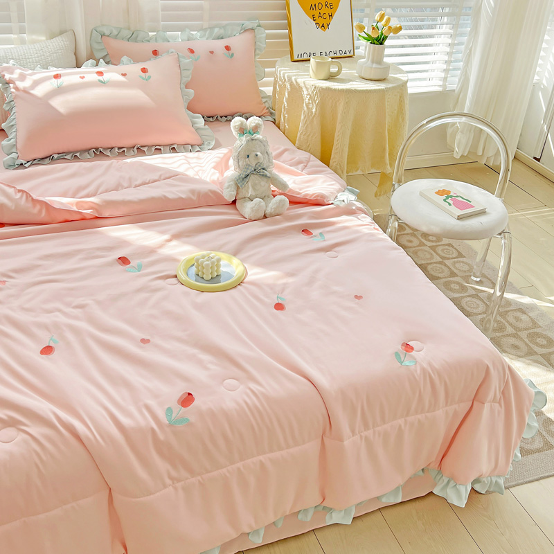 寐居 2023水洗天丝棉刺绣夏被 优雅花蜜-粉玉