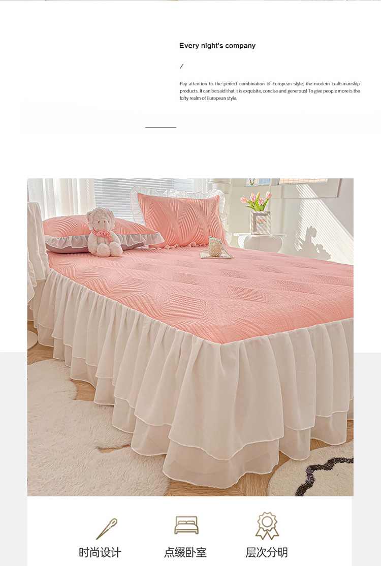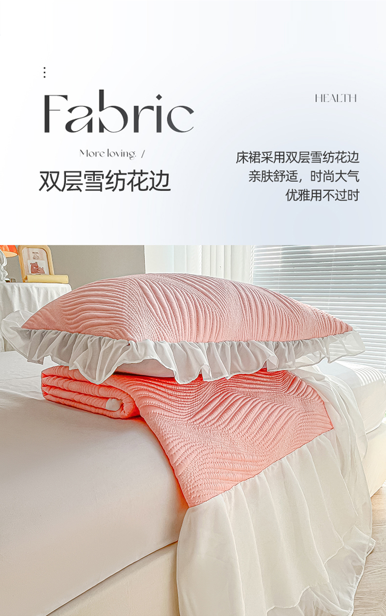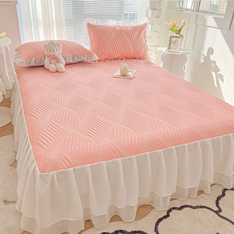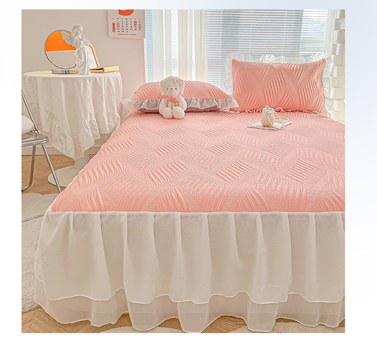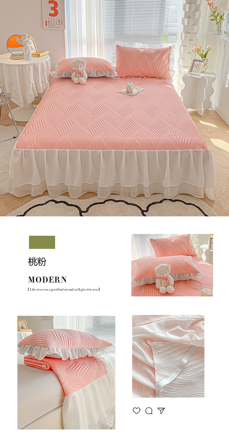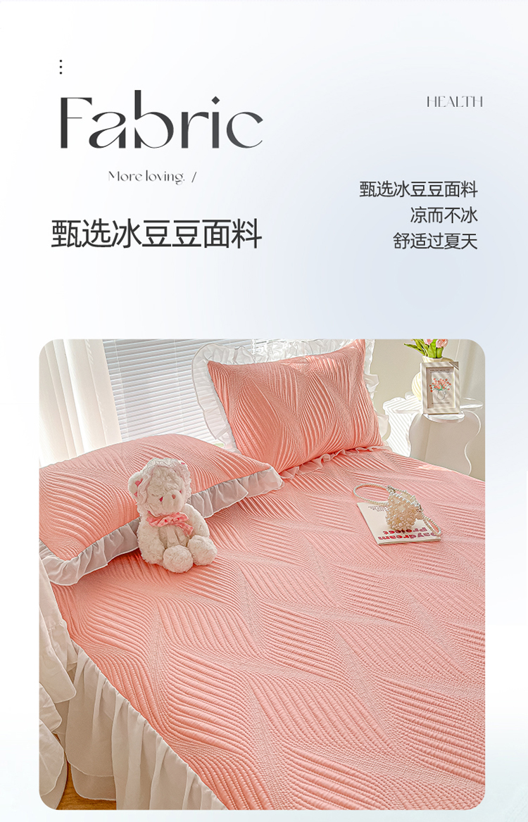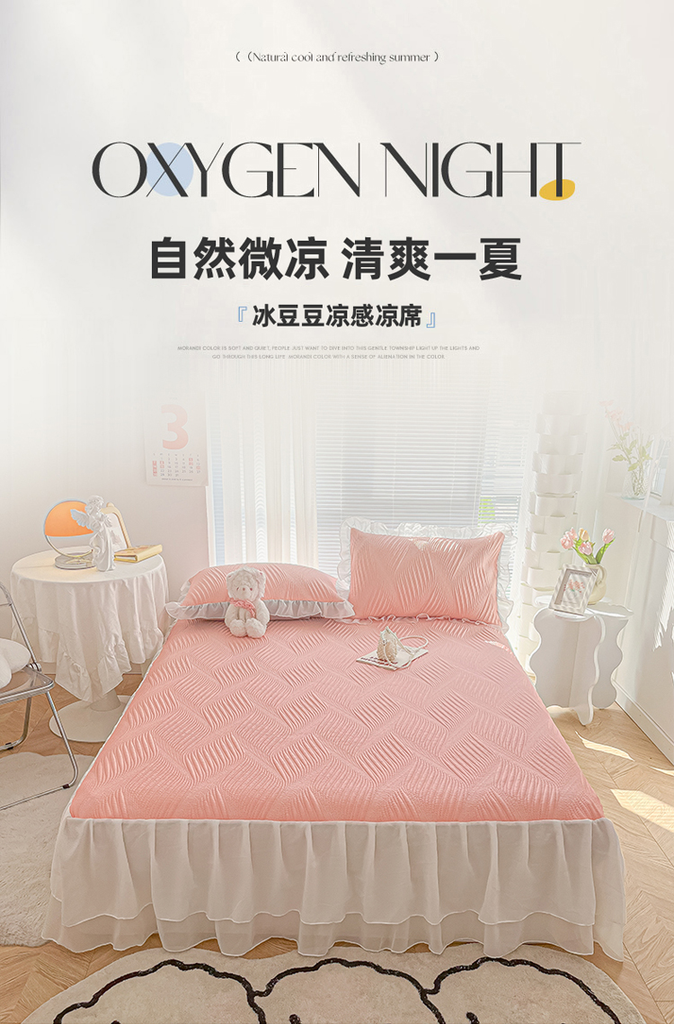 商品名称:十里居 2023款冰豆豆按摩凉感床裙款凉席三件套 桃粉