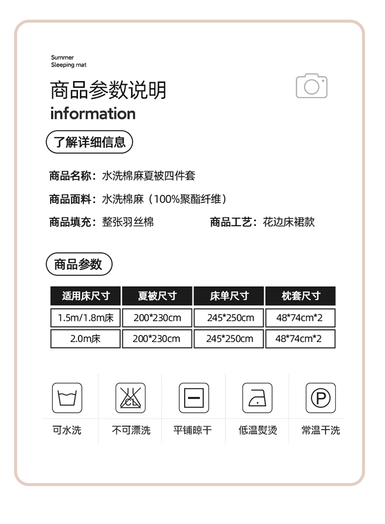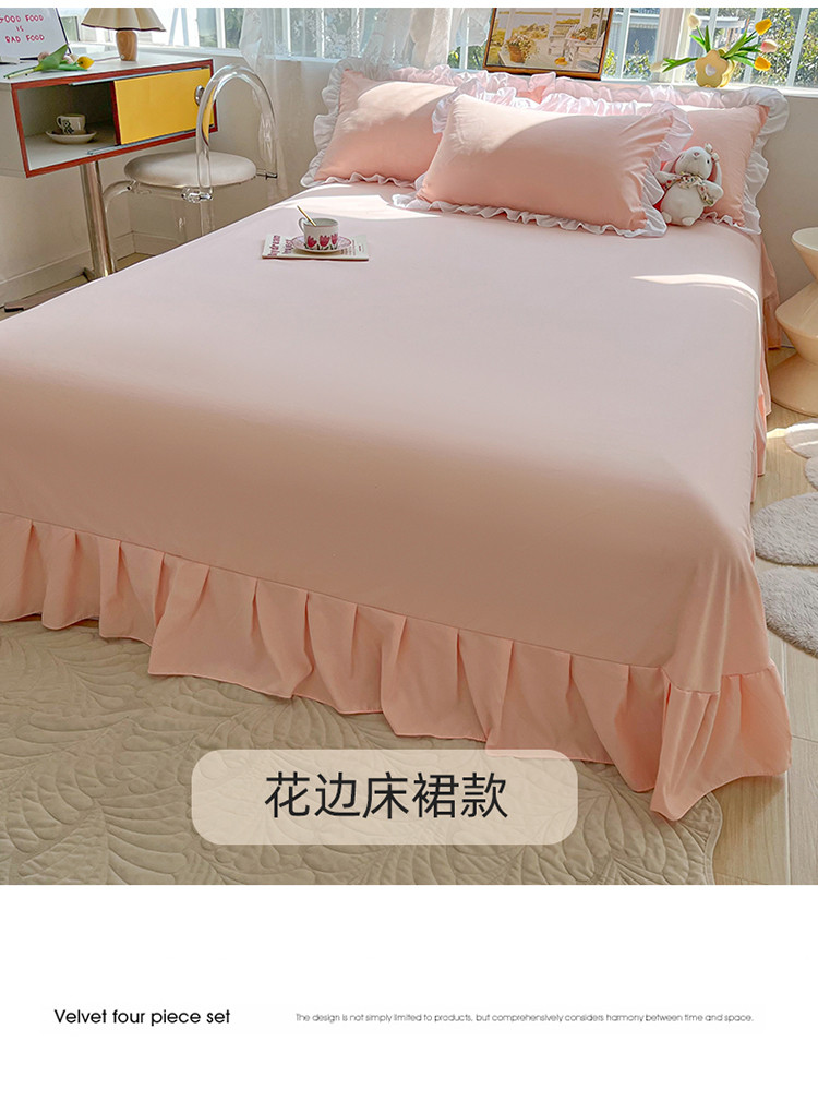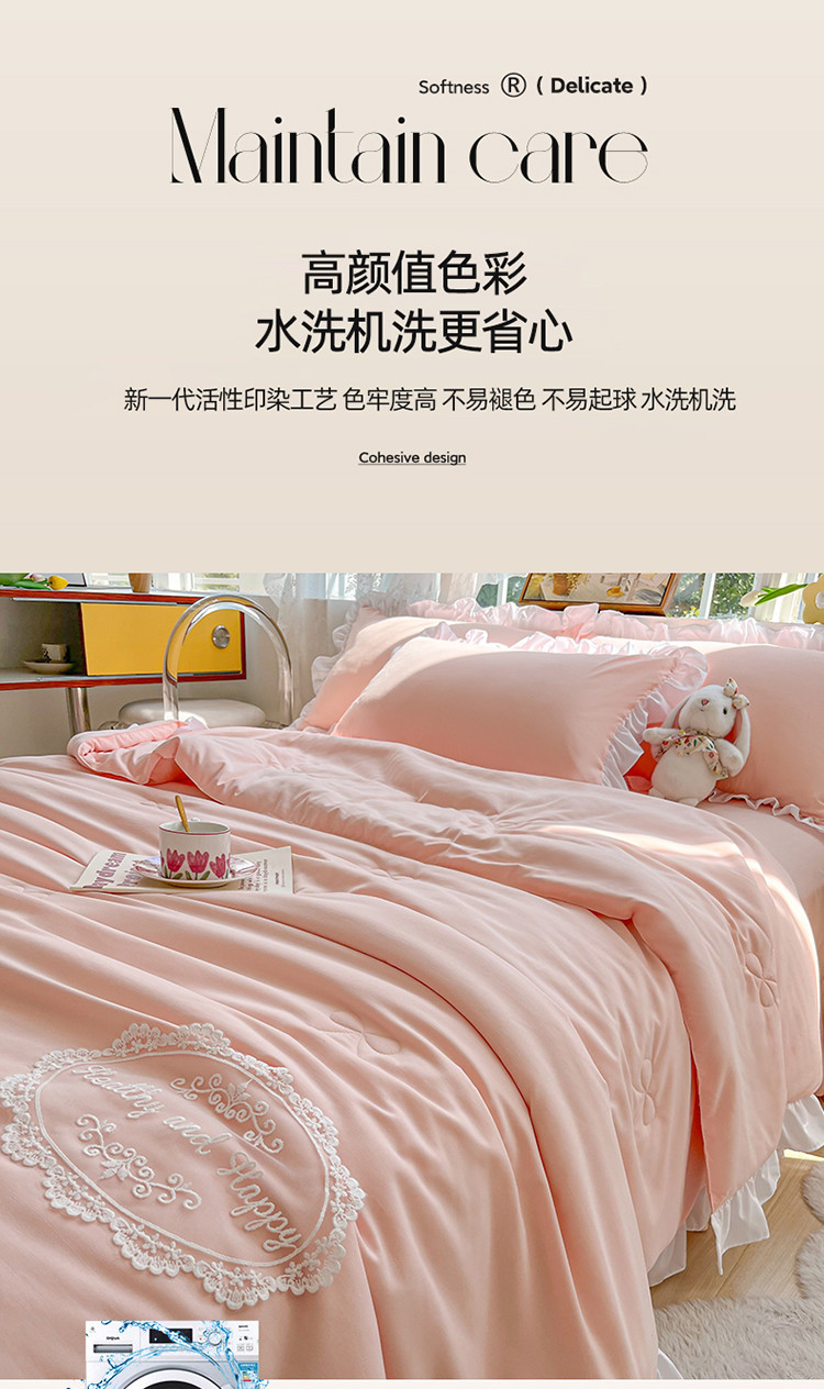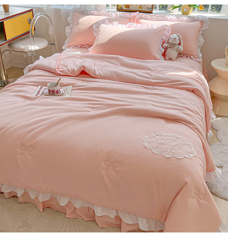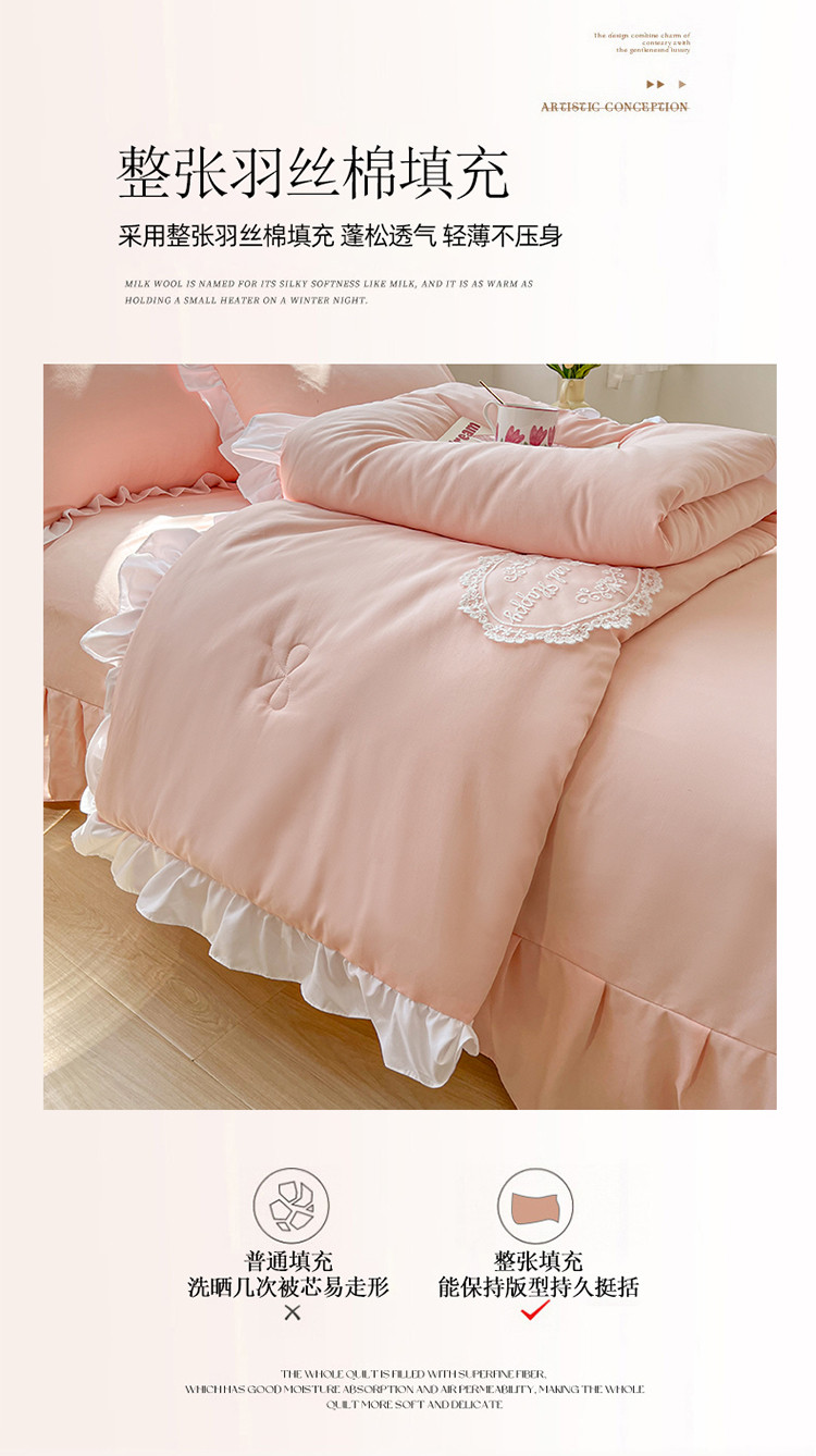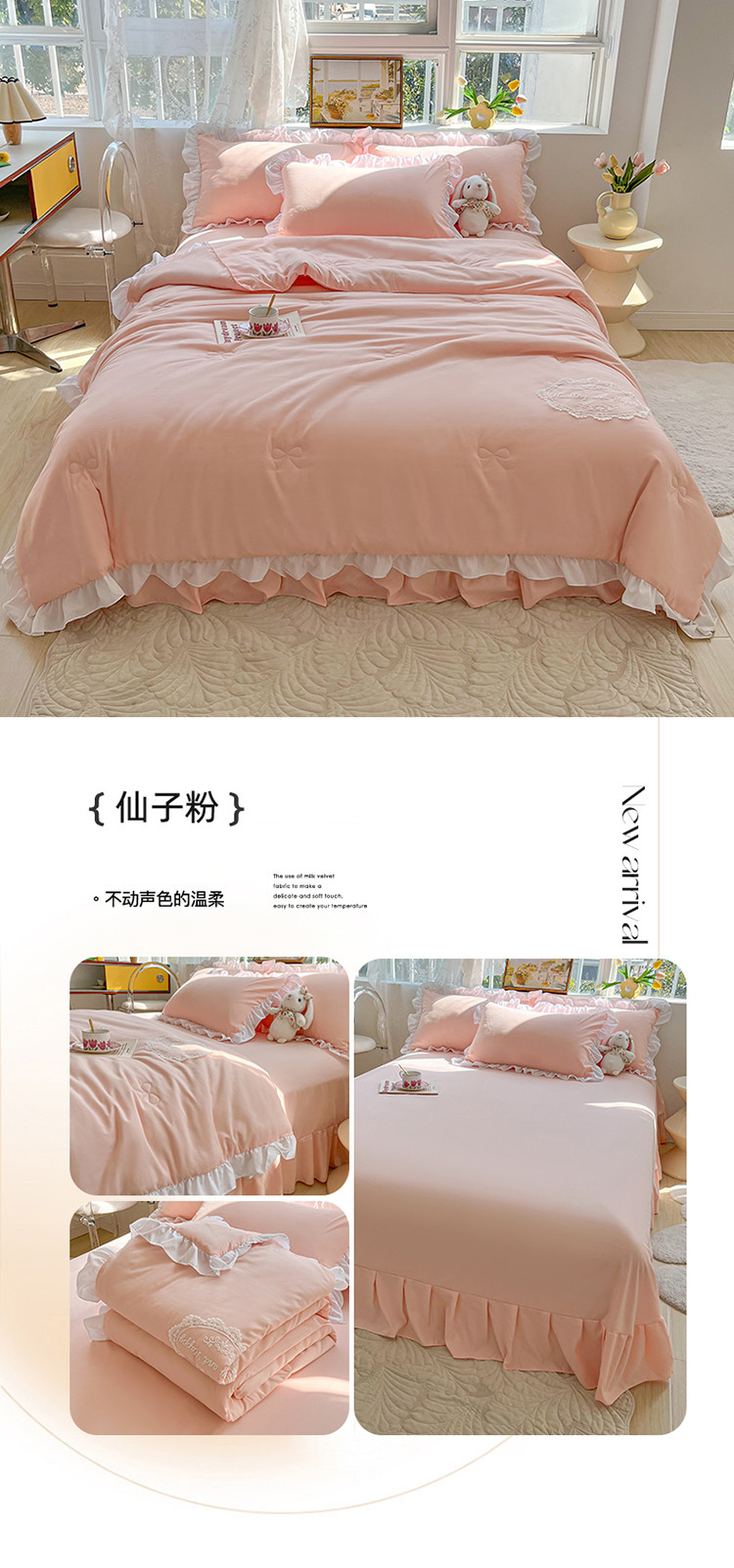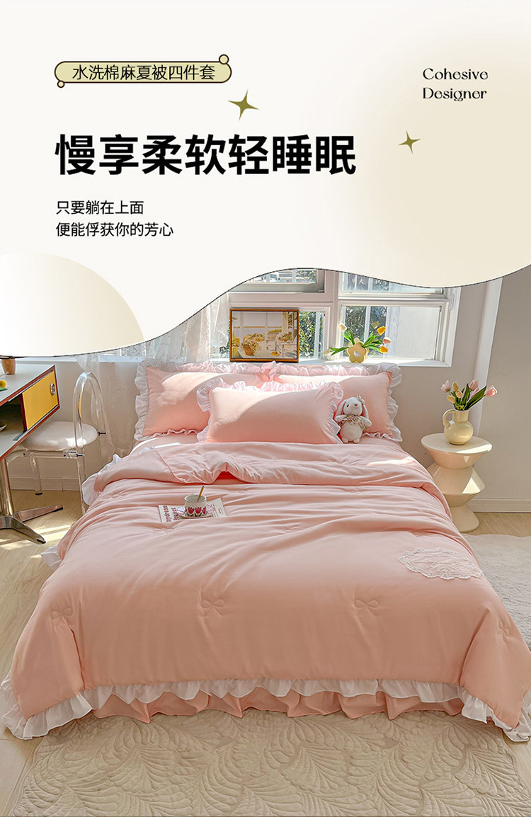 商品名称:十里居 2023新款水洗棉麻蕾丝韩版床裙夏被四件套 仙子粉