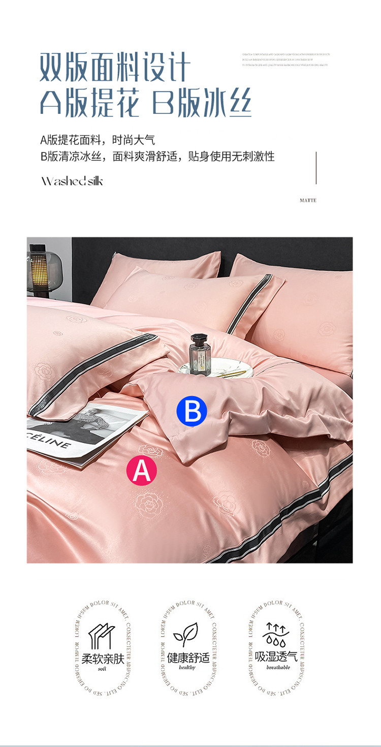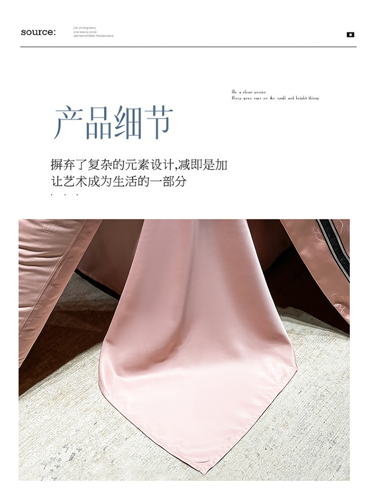商品名称:宅家居2023新款设计款轻奢高精密贡缎提花臻品真丝四件套 山茶花-粉玉