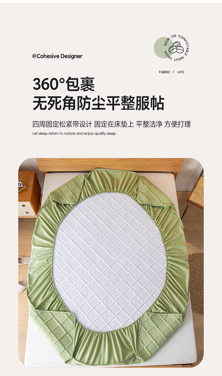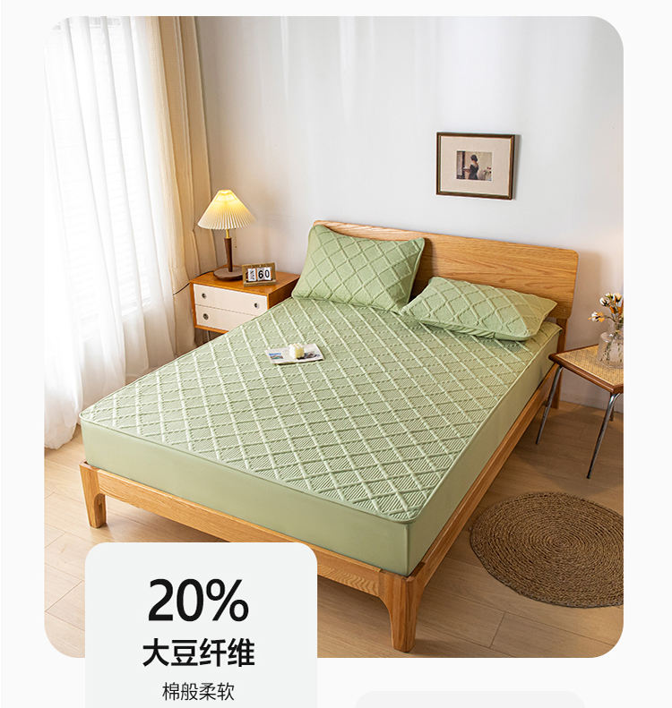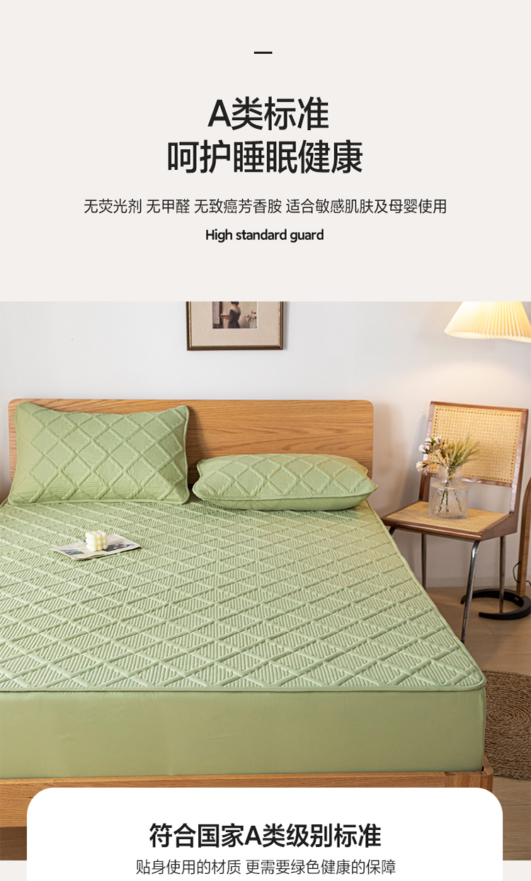 • 91家纺网 家纺一手货源 找家纺 东宇 2023新款A类原棉防水床笠 无印果绿