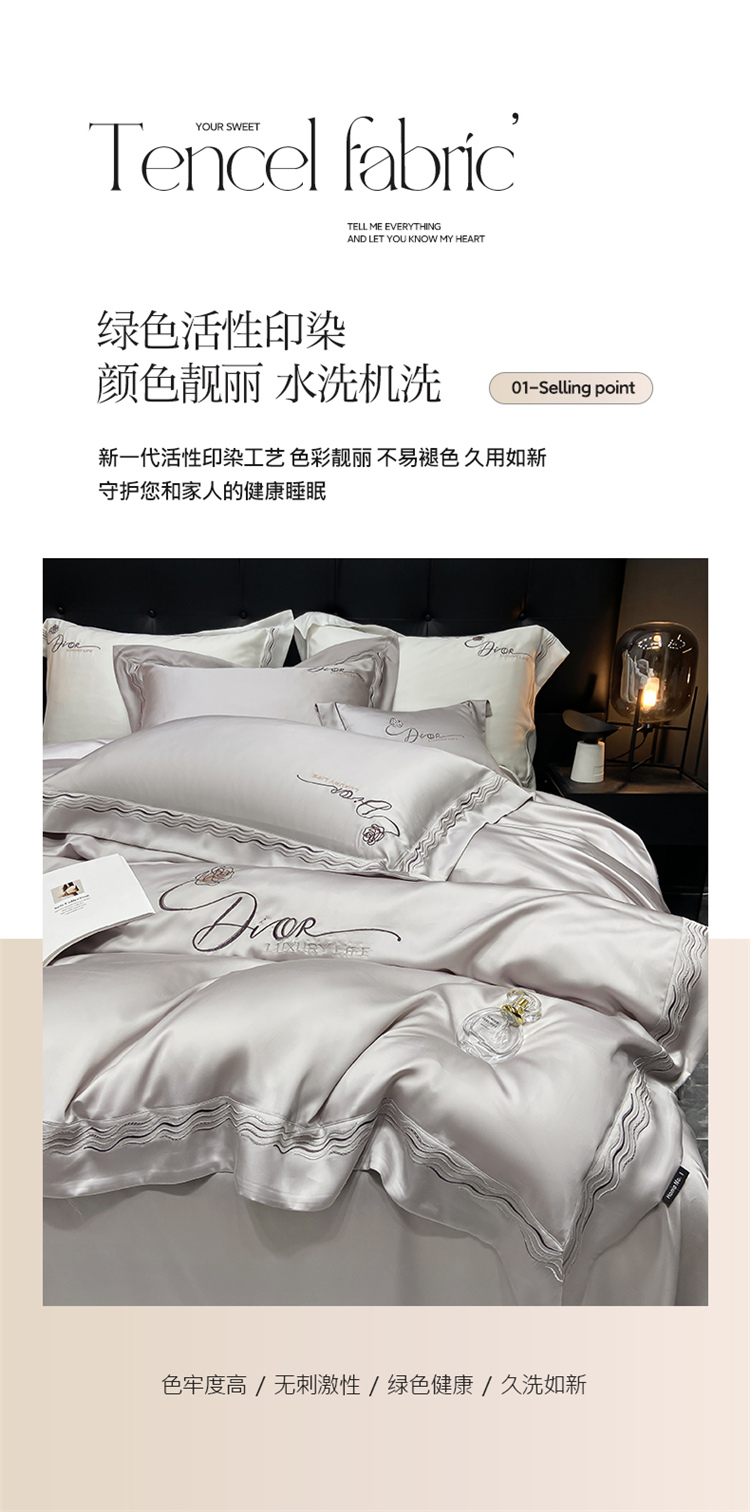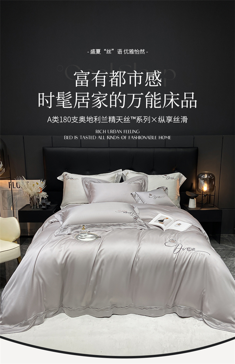 商品名称:家居1号 2024新款180支奥地利兰精天丝四件套 迪莉尔-绅士灰
