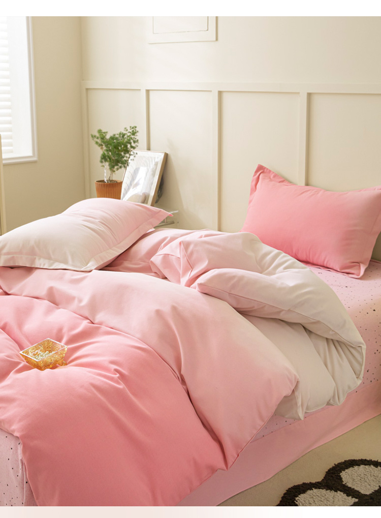商品名称:卧趣 2023新款全棉磨毛四件套渐变风印花四件套 过江寒-粉