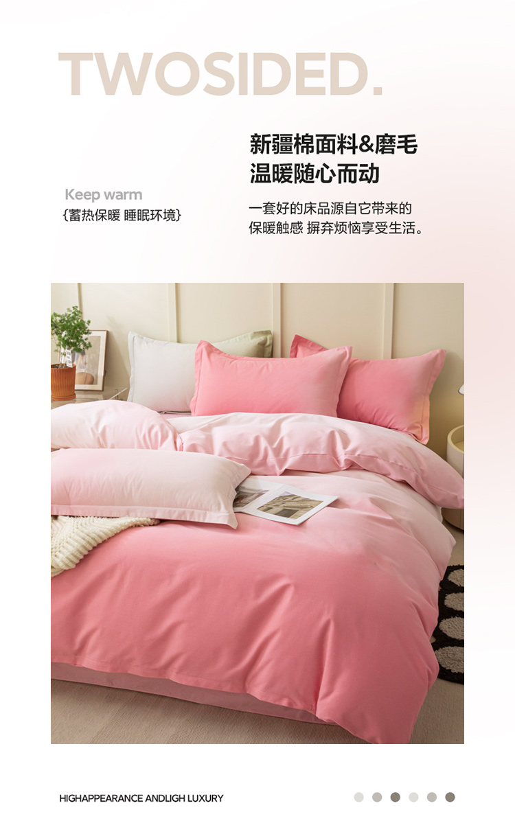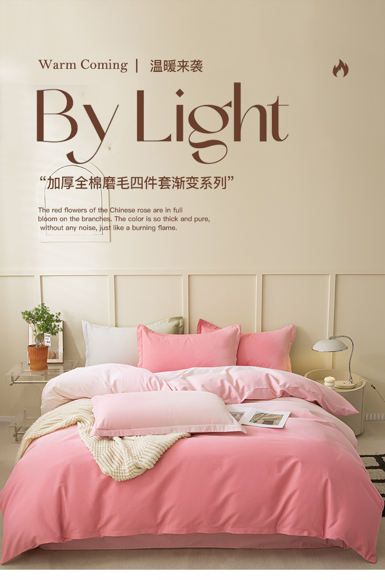 卧趣 2023新款全棉磨毛四件套渐变风印花四件套 过江寒-粉