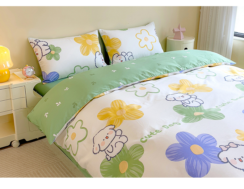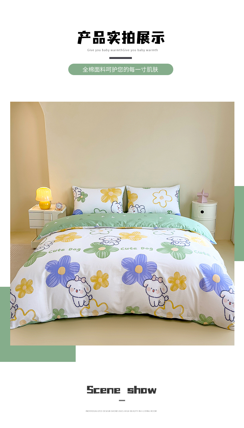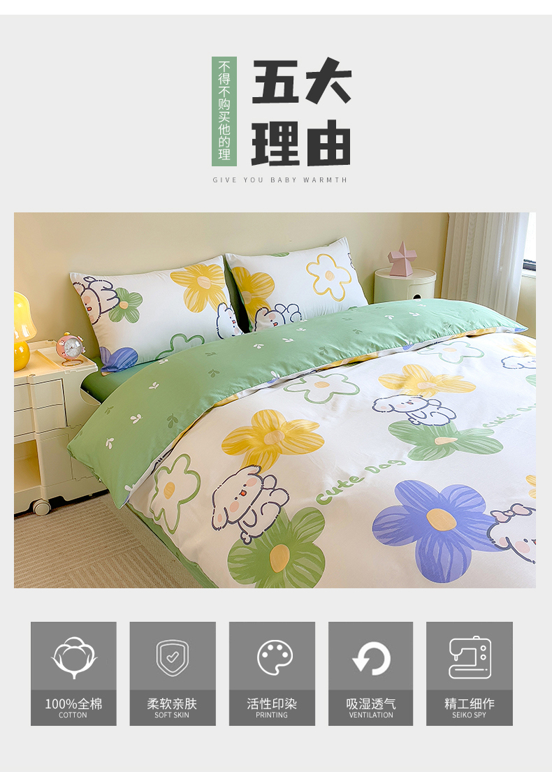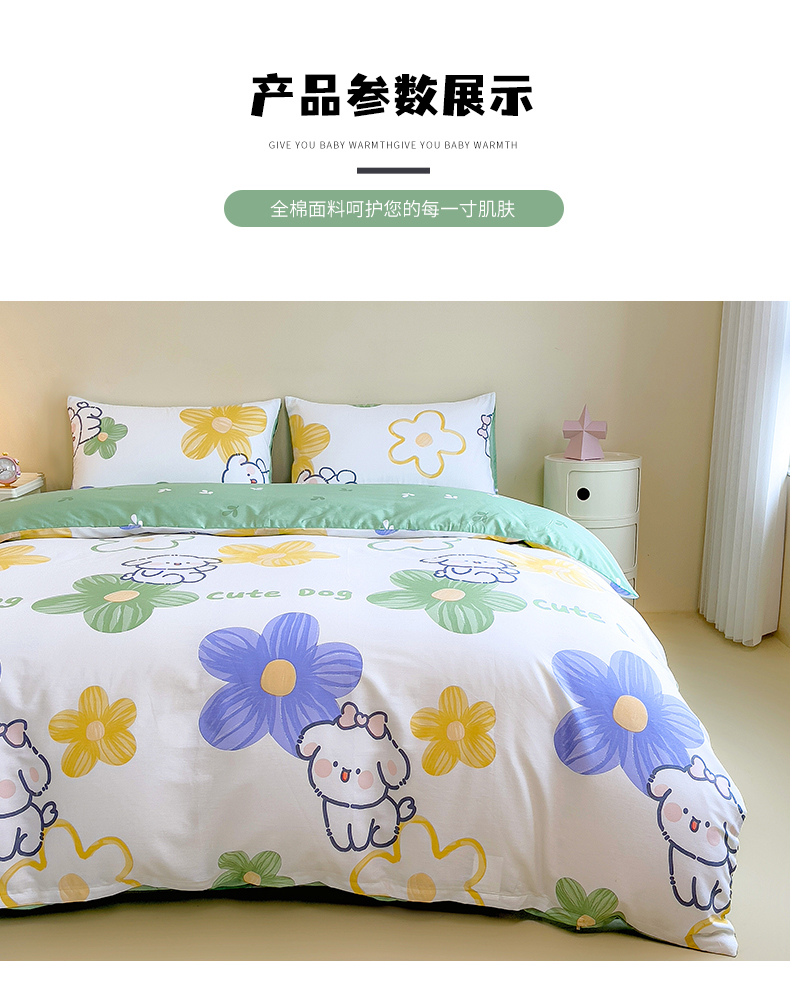 商品名称:芃成家纺 2023新款全棉13070四件套 花园乐宠