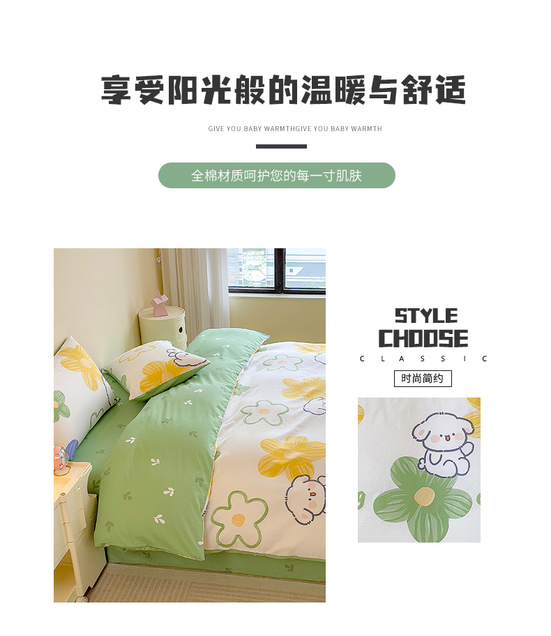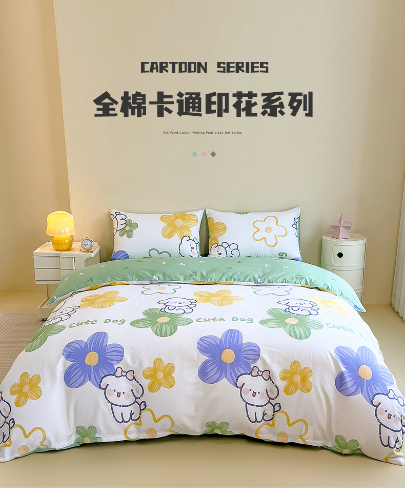 芃成家纺 2023新款全棉13070四件套 花园乐宠
