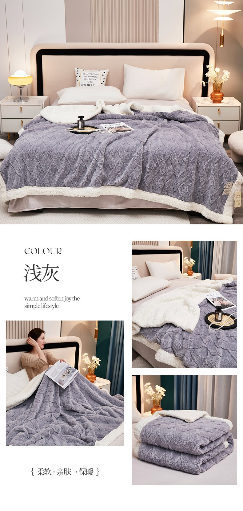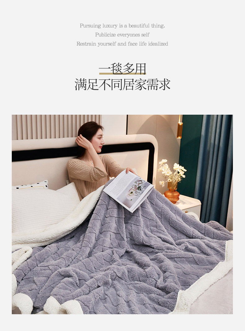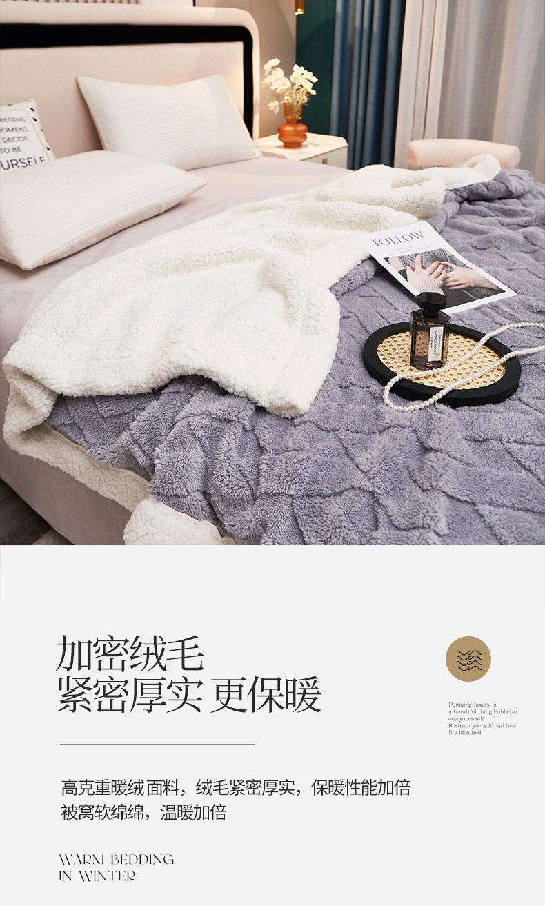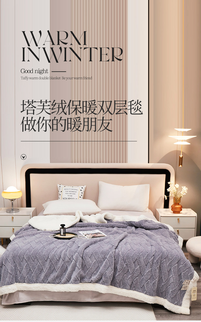 商品名称:肖恩 2025秋冬新款塔芙绒羊羔绒毛毯 浅灰