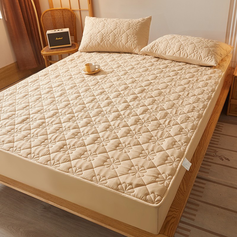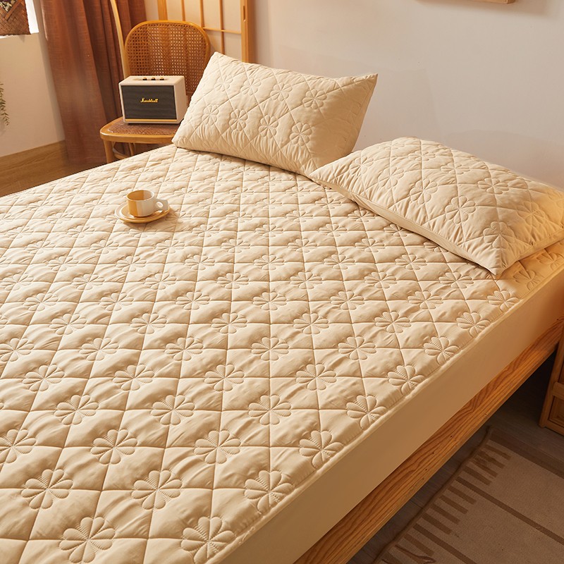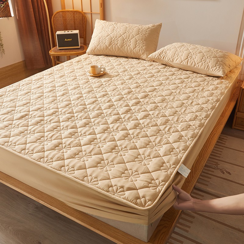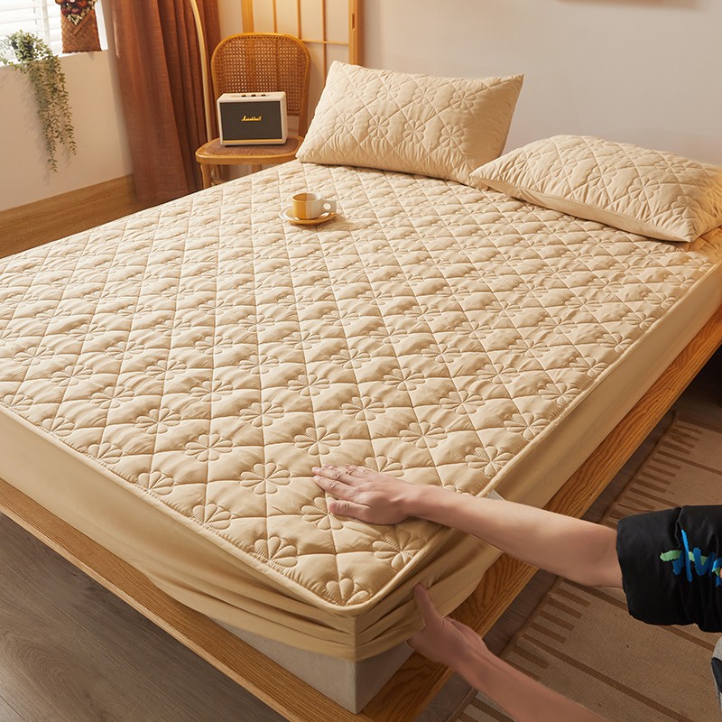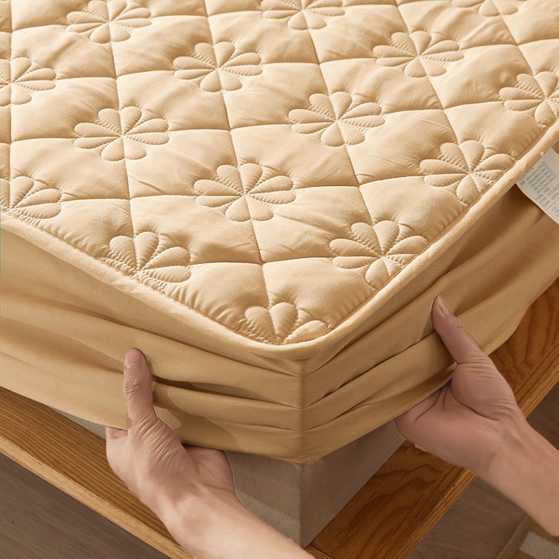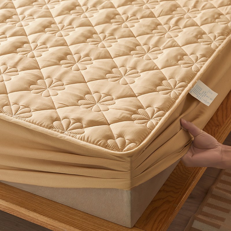 乐逸2023新款亲肤夹棉防水床笠 花朵驼