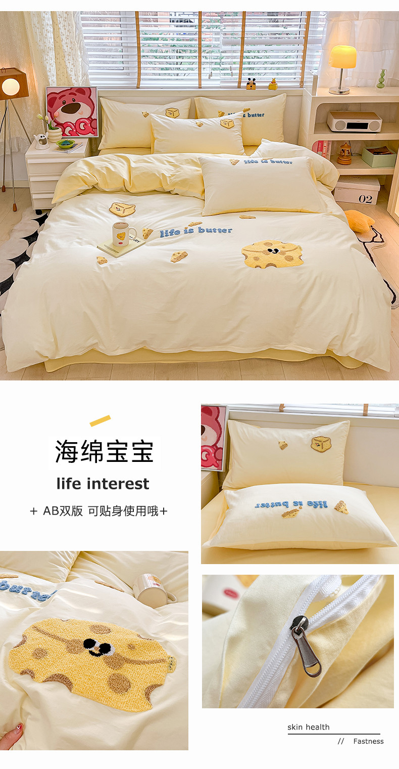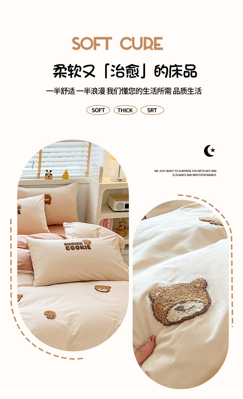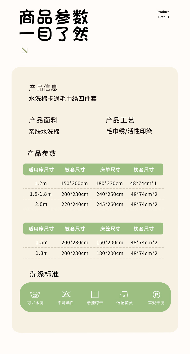 (总)丽美人家纺 2023新款水洗棉卡通毛巾绣四件套