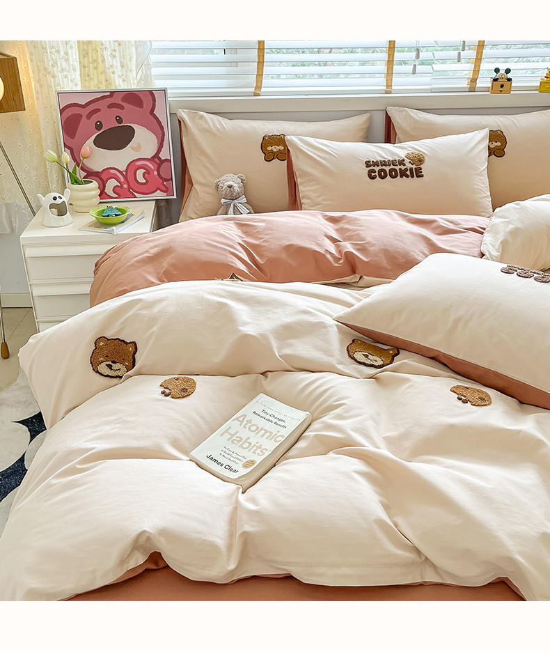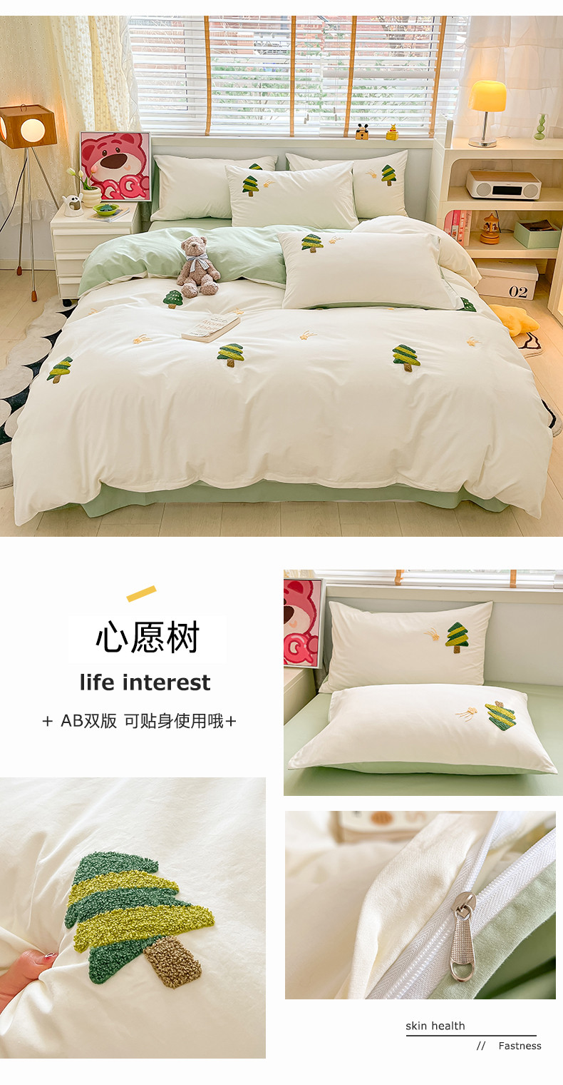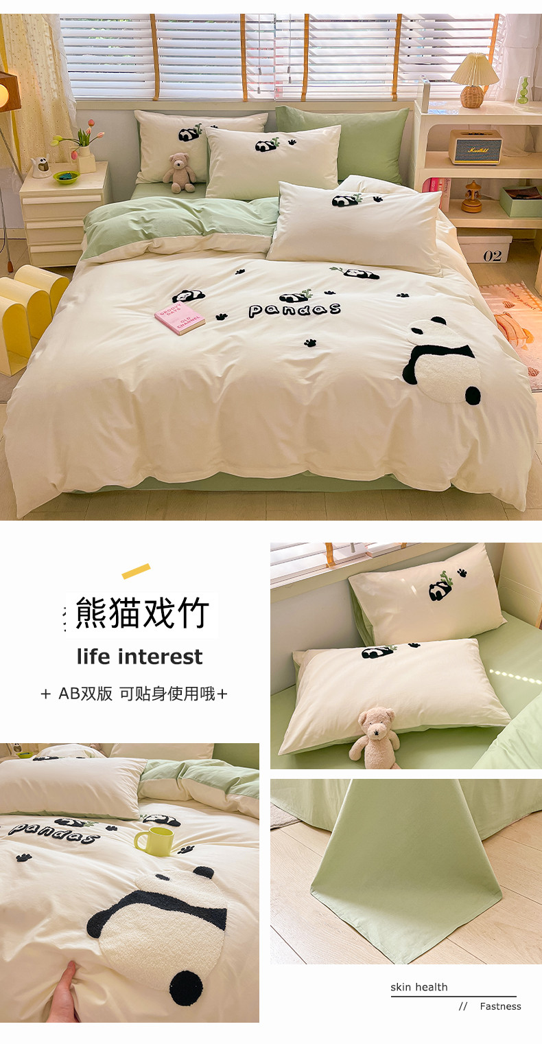 (总)丽美人家纺 2023新款水洗棉卡通毛巾绣四件套