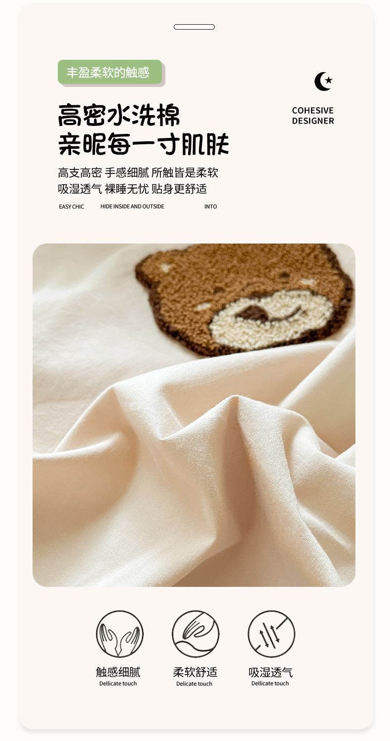商品名称:(总)丽美人家纺 2023新款水洗棉卡通毛巾绣四件套