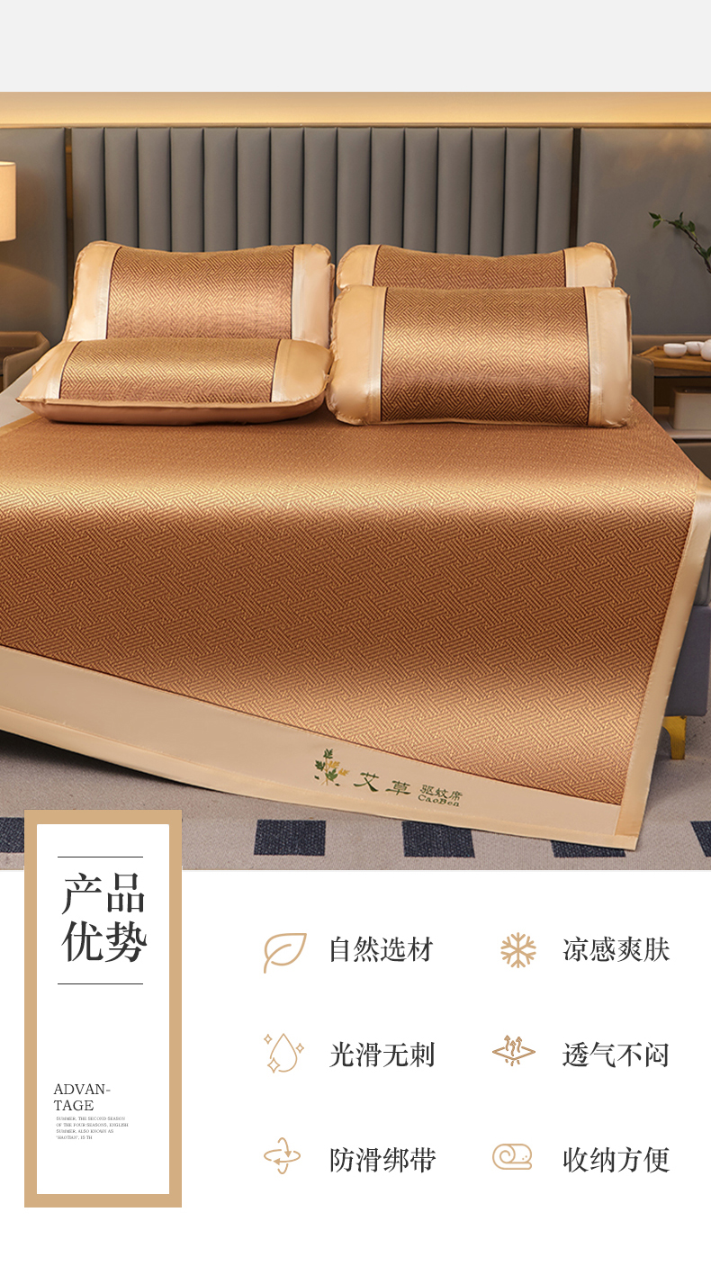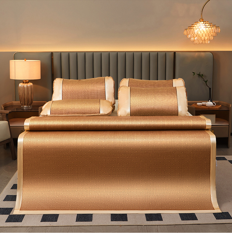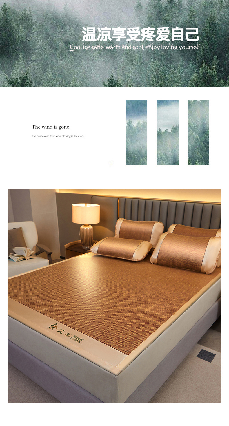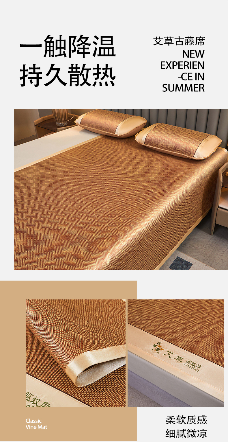(总)席都 2024新款冰藤席床席三件套-三明治-冰藤席系列,灰,金,绿,粉,蓝