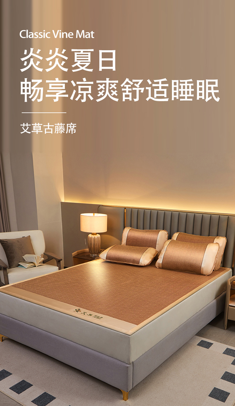 商品名称:席都凉席工厂店 2024新款方角古藤席 艾草-饼干花