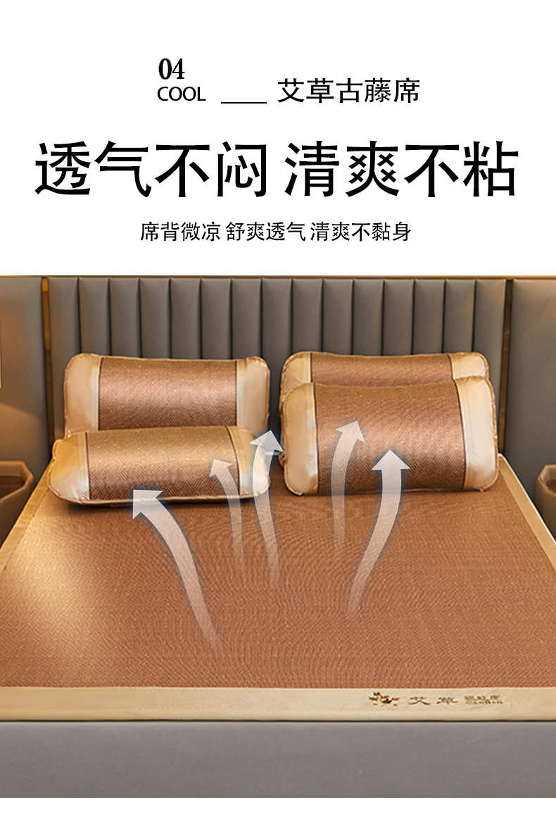(总)席都凉席工厂店 2024新款冰藤床笠三件套-三明治系列-冰藤席系列,灰色,金咖,绿色