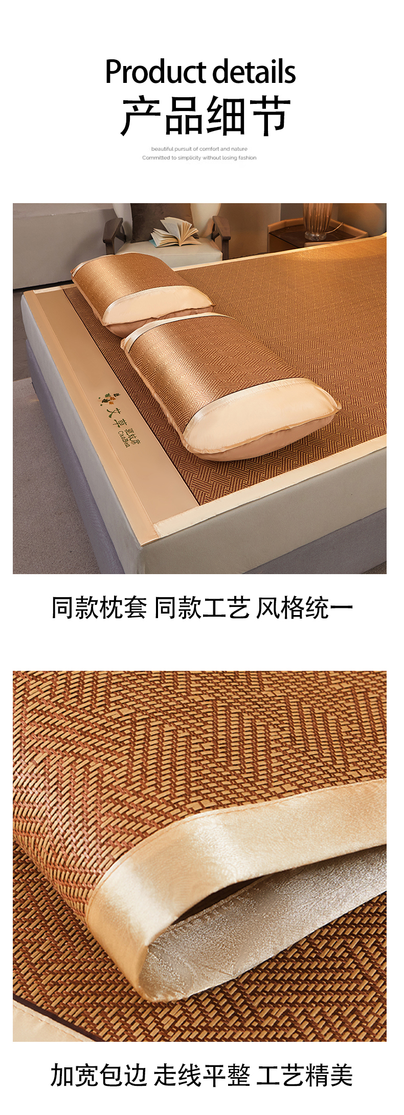 (总)席都凉席工厂店2025新款宽边冰藤席三件套-小熊绣花,饼干花,步步高,水中花