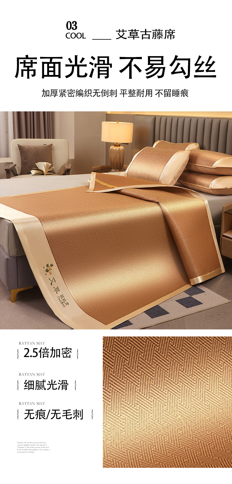 席都凉席工厂店 2024新款方角古藤席 艾草-饼干花