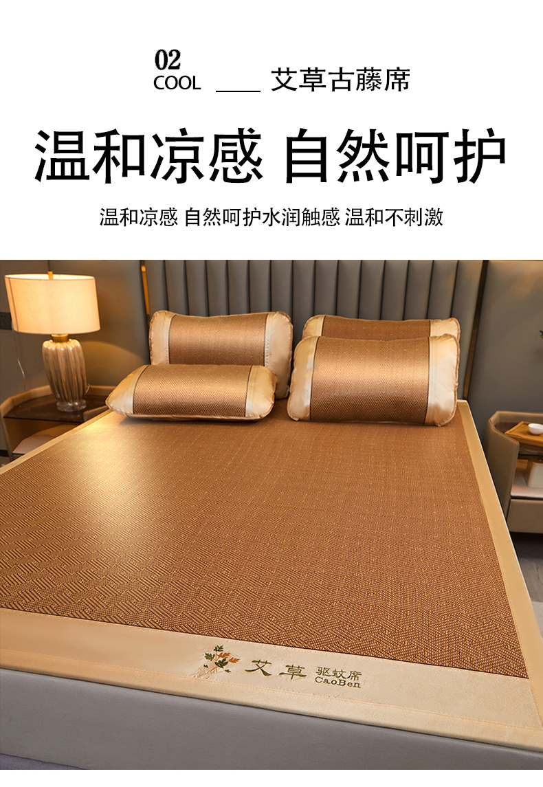 席都凉席工厂店 2024新款方角古藤席-艾草-水中花,艾草-水中花