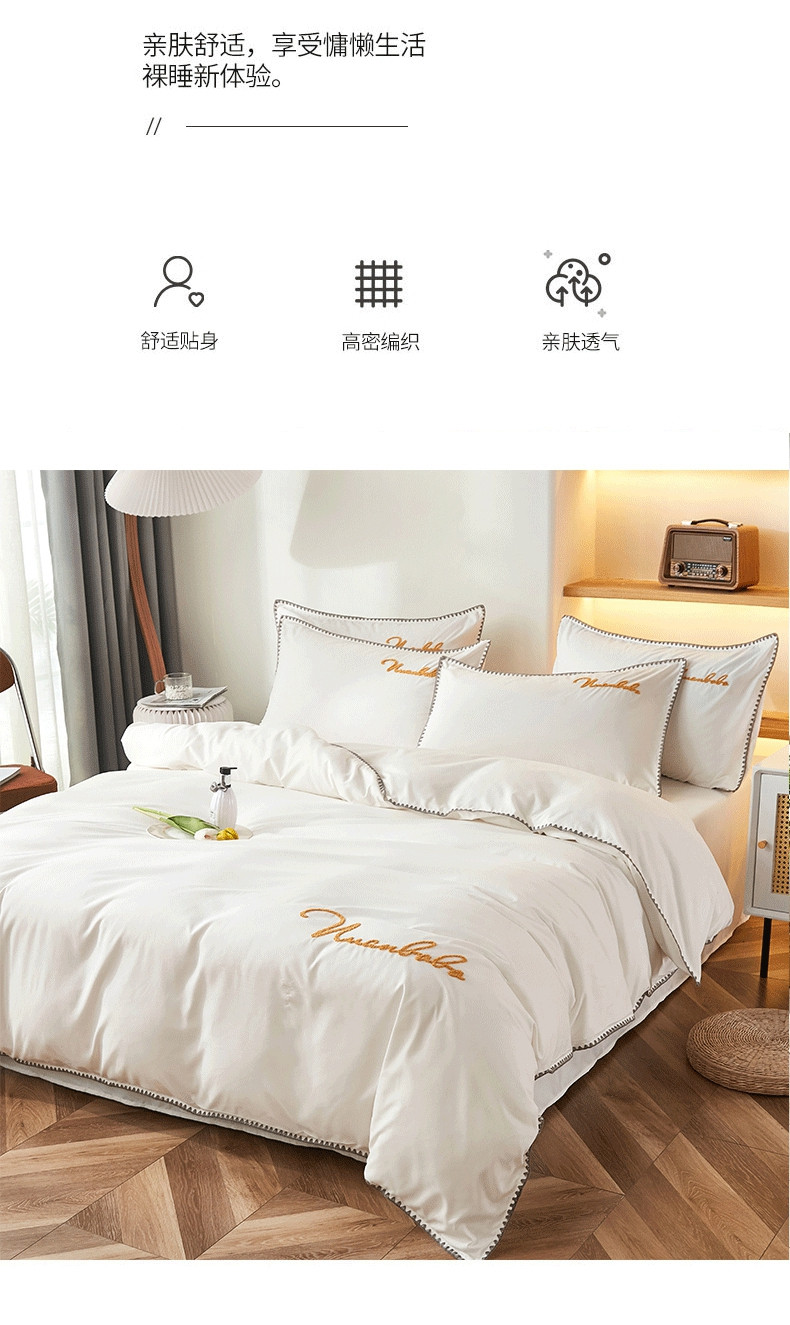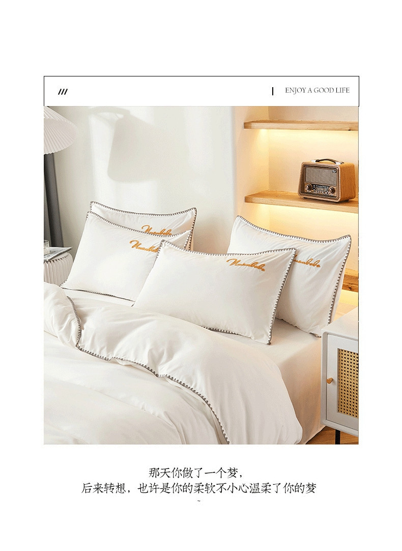 (总)啊雅家居 2025新款40S全棉飞边预留缩水款酒店民宿宾馆四件套一套可订制,白色