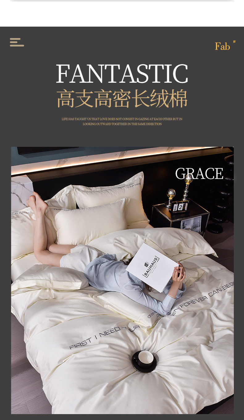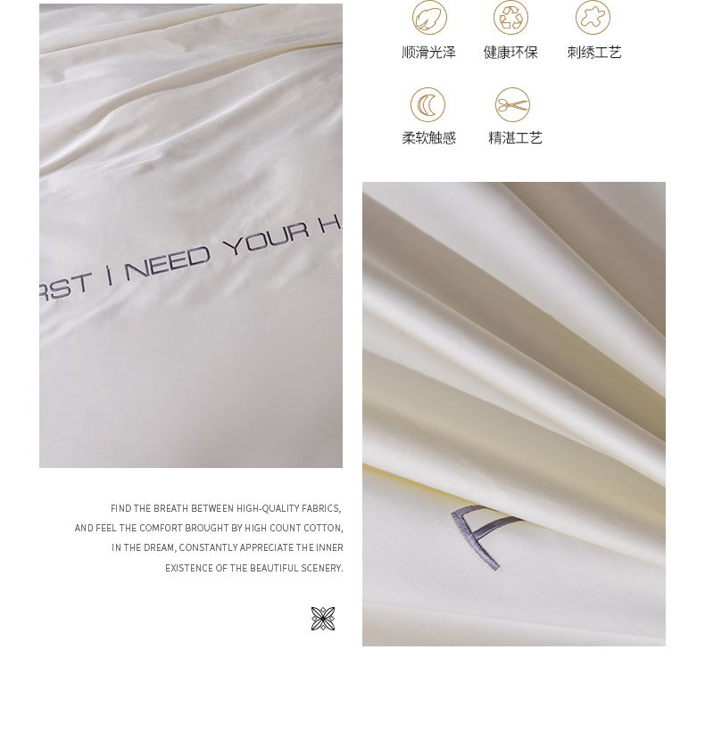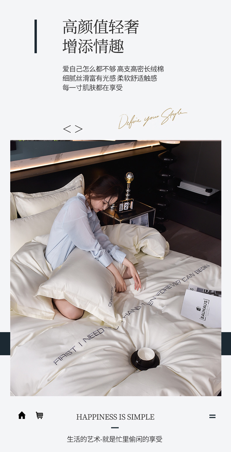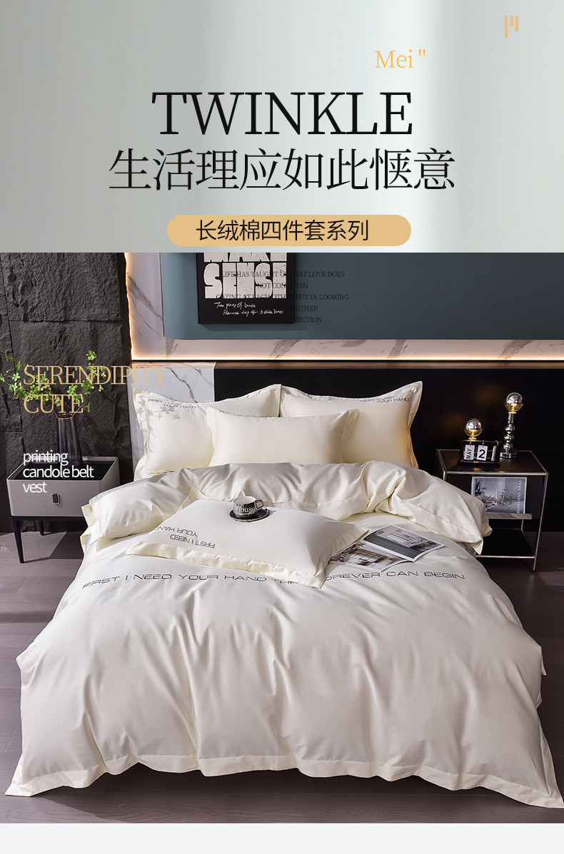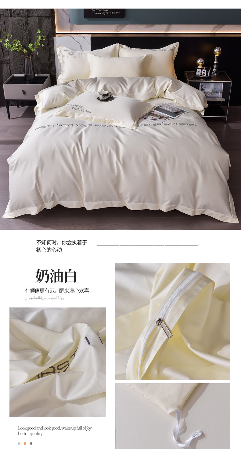 商品名称:米奈2024新款100支长绒棉四件套《莱恩》 奶油白
