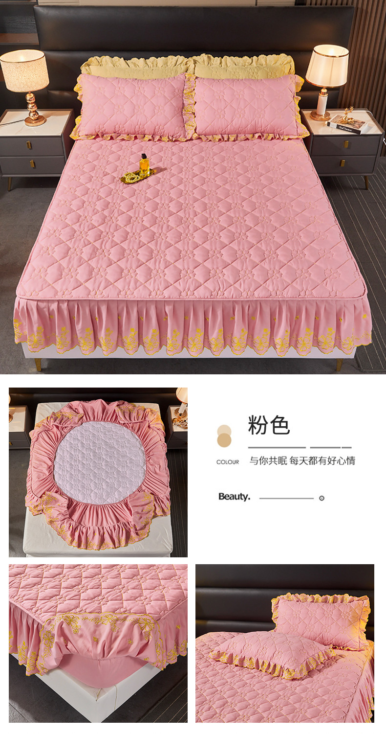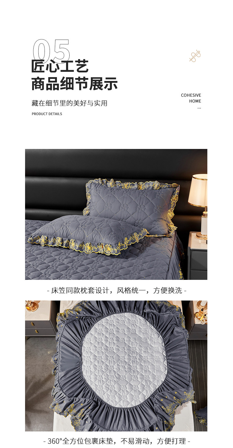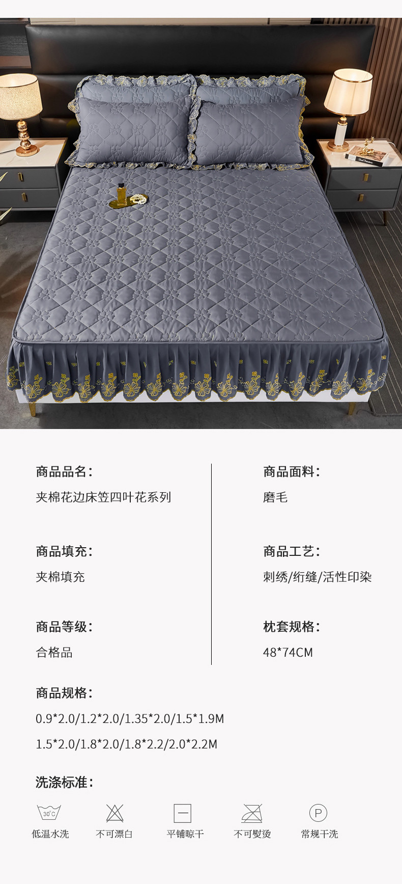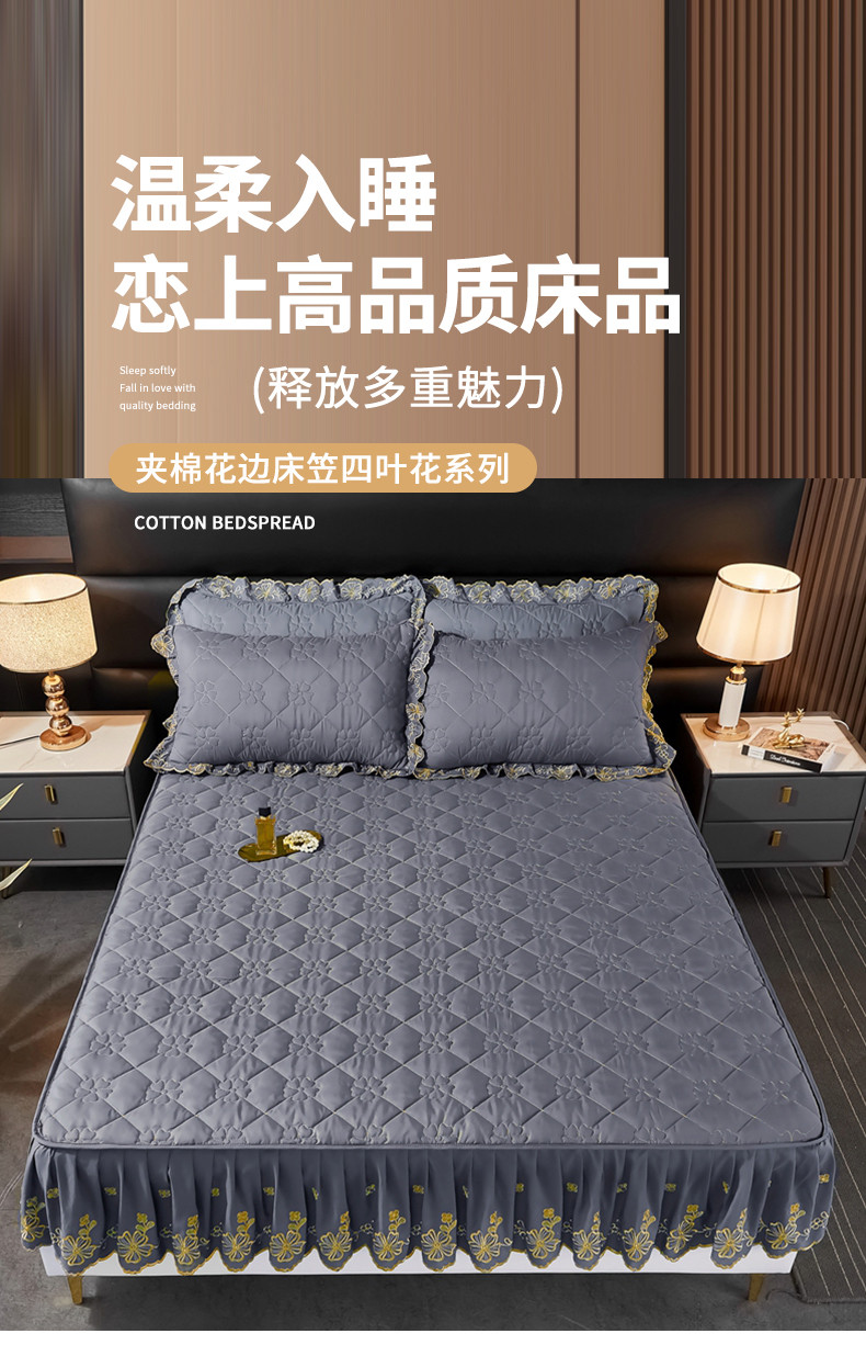 (总)家之硕家纺 2023新款四叶花系列夹棉花边床笠